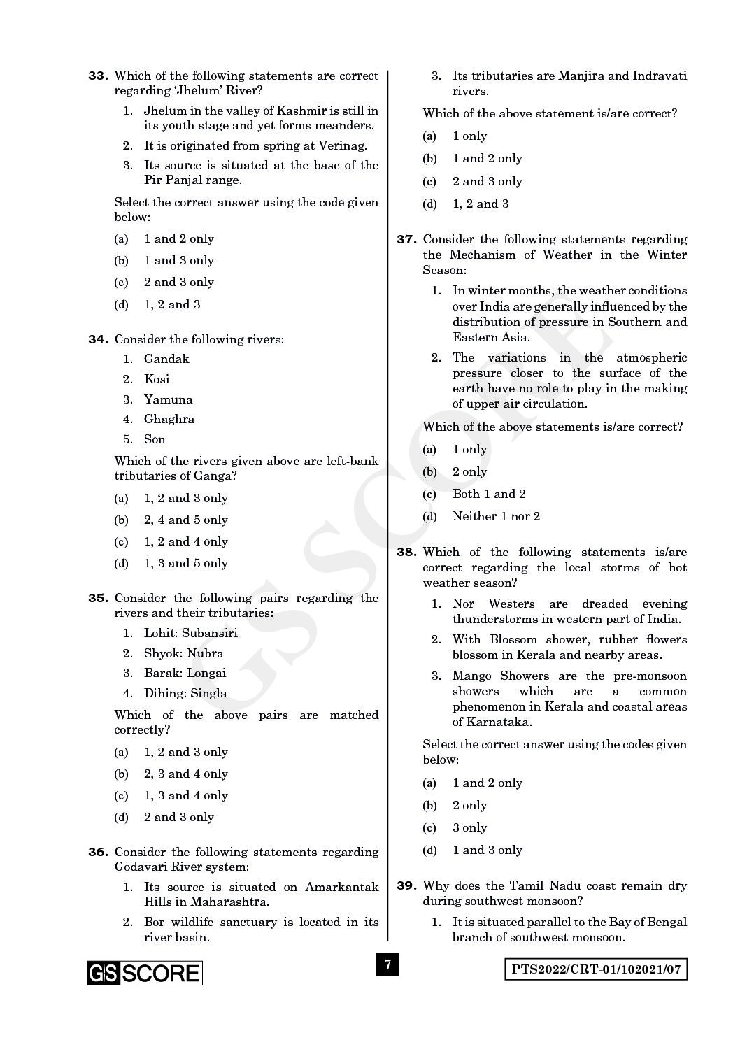 / GS SCORE IAS 2022 PRELIMS TEST SERIES TEST-7 (FUNDAMENTAL OF GEOGRAPHY -2 ) 2022 (BLACK & WHITE)