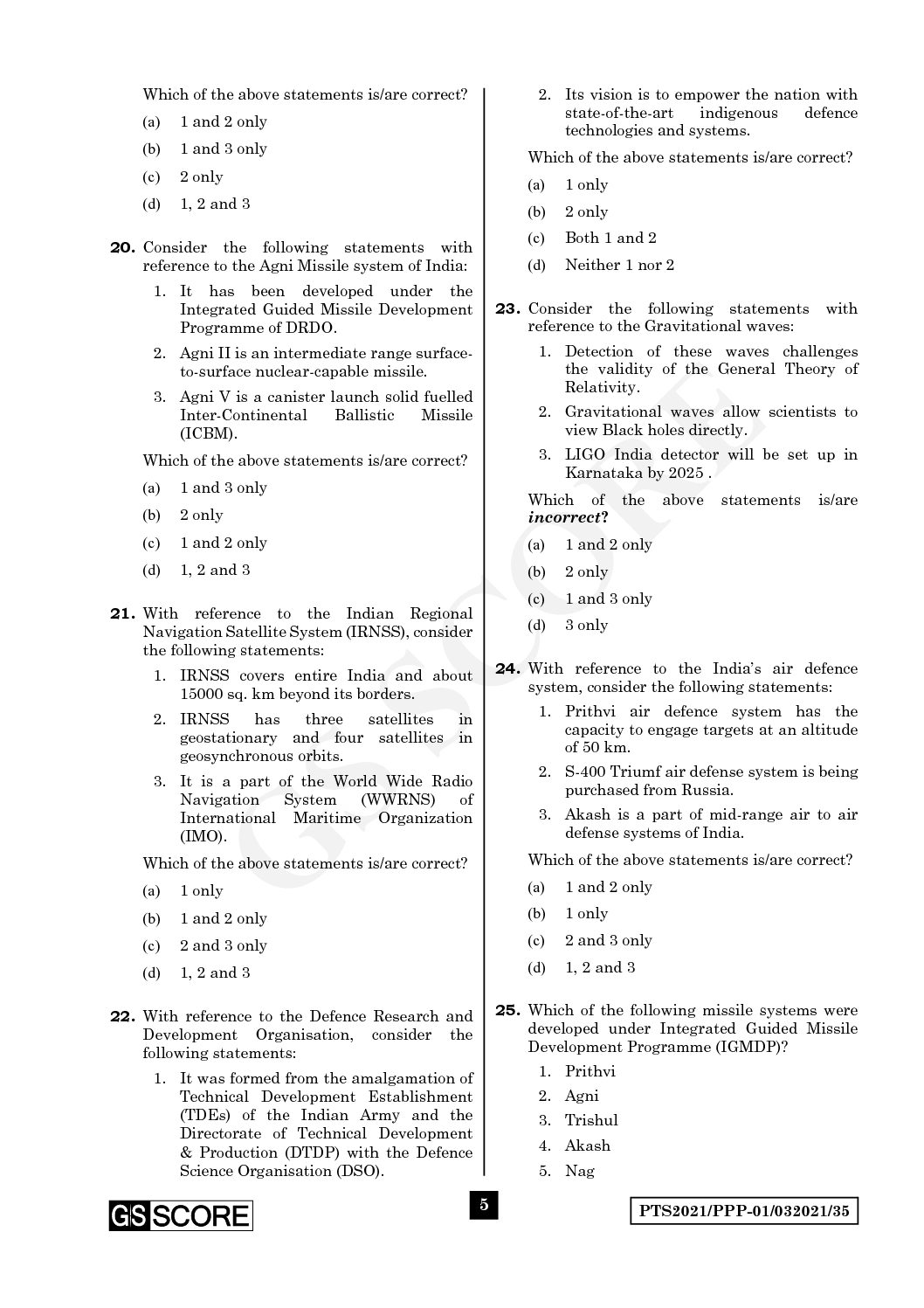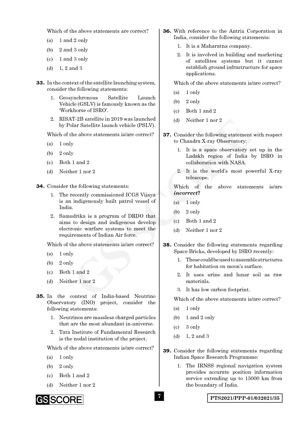 / GS SCORE PRELIMS TEST SERIES 2021 TEST-35 SCIENCE & TECHNOLOGY-3