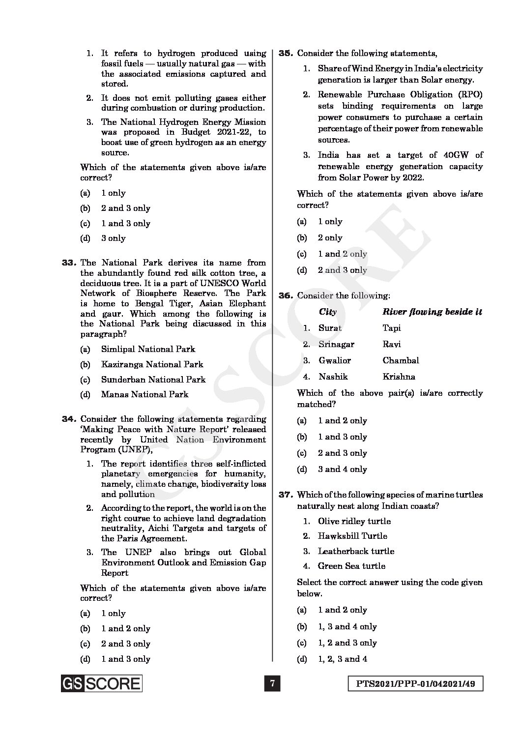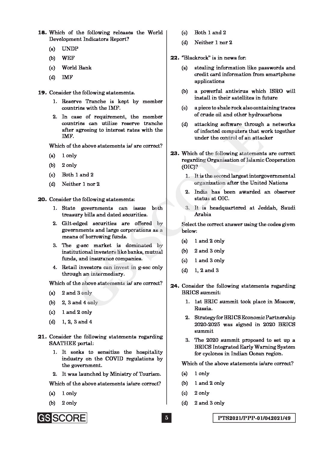 / GS SCORE PRELIMS TEST SERIES 2021 TEST-49 MOCK-3 PAPER-1