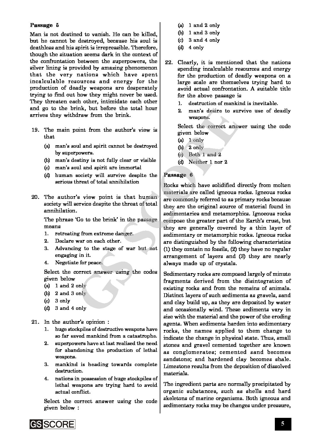 / GS SCORE PRELIMS TEST SERIES 2021 TEST-65 MOCK-16 PAPER-2