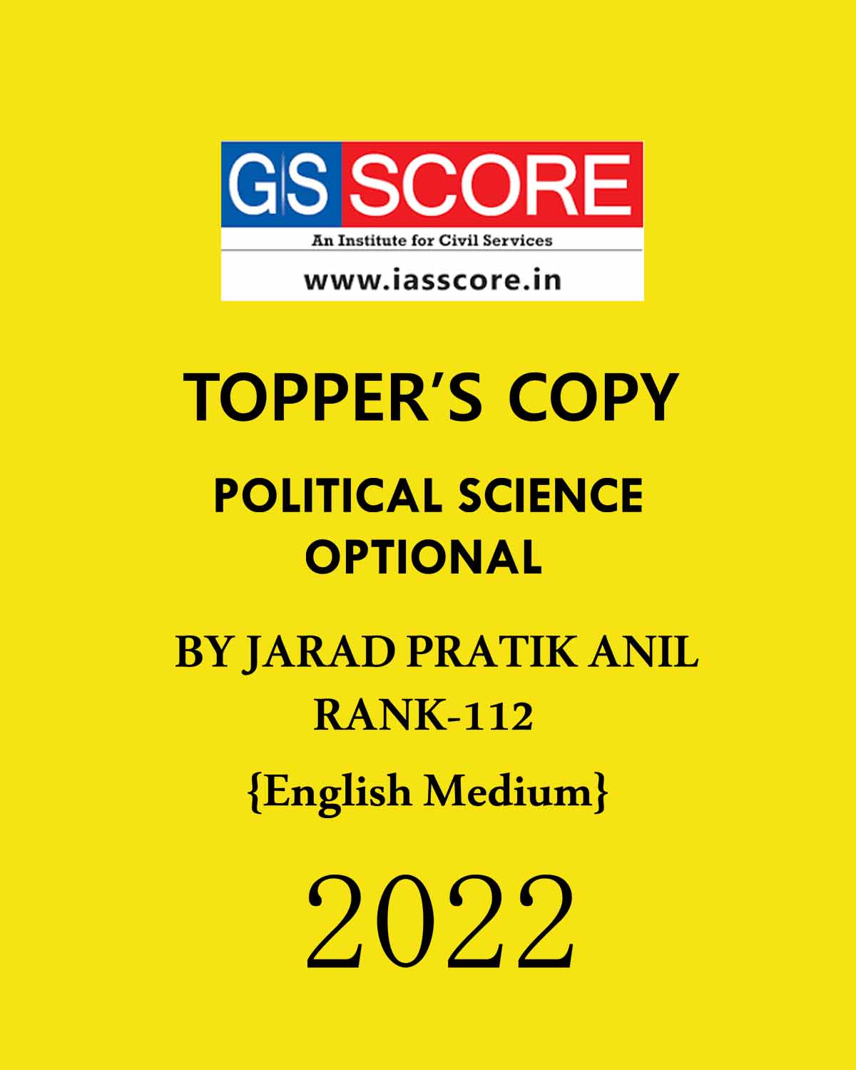 GS SCORE TOPPERS COPIES POLITICAL SCIENCE OPTIONAL TOPPER’S COPY BY JARAD PRATIK ANIL (RANK-112) ENGLISH MEDIUM 2022 (BLACK & WHITE)
