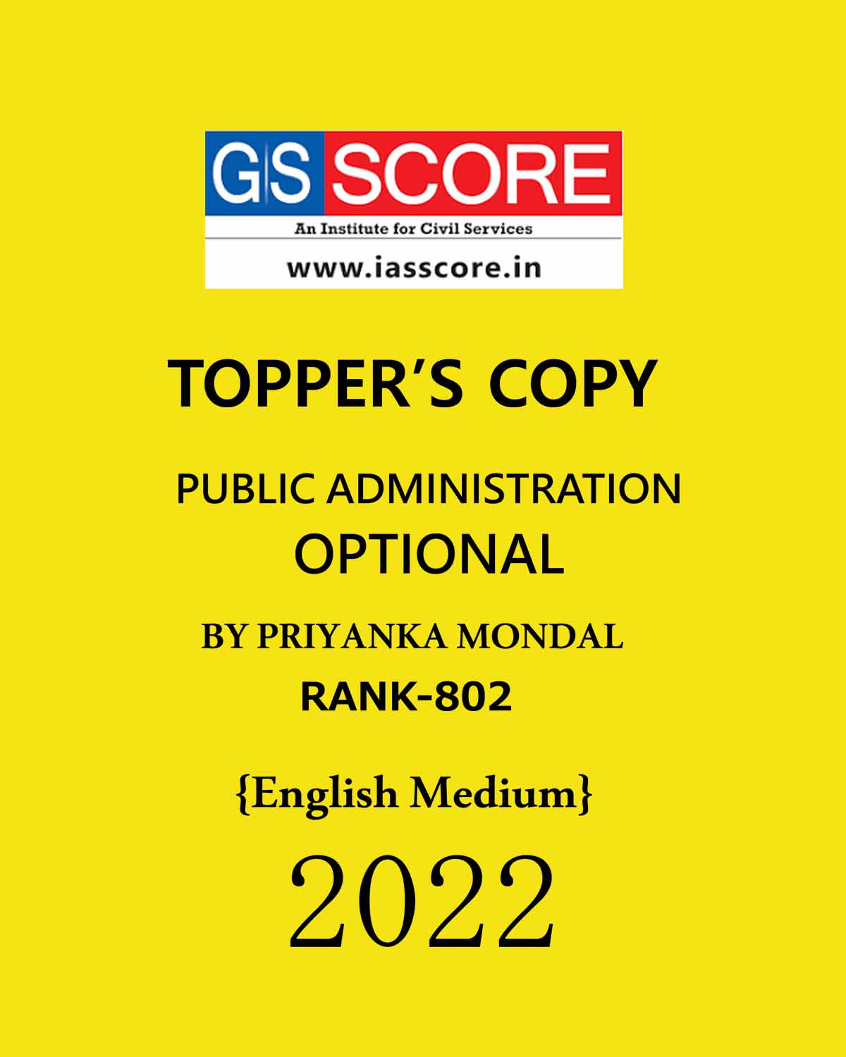 GS SCORE TOPPERS COPIES PUBLIC ADMINISTRATION OPTIONAL TOPPER’S COPY BY PRIYANKA MONDAL (RANK-802) ENGLISH MEDIUM 2022 (BLACK & WHITE)