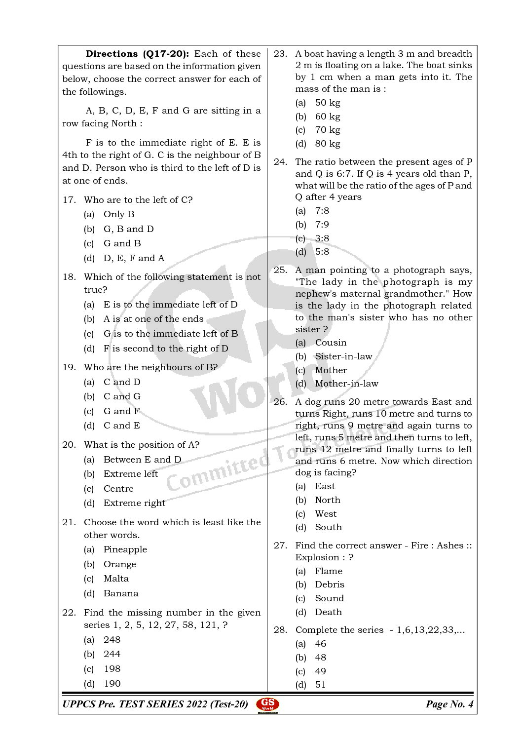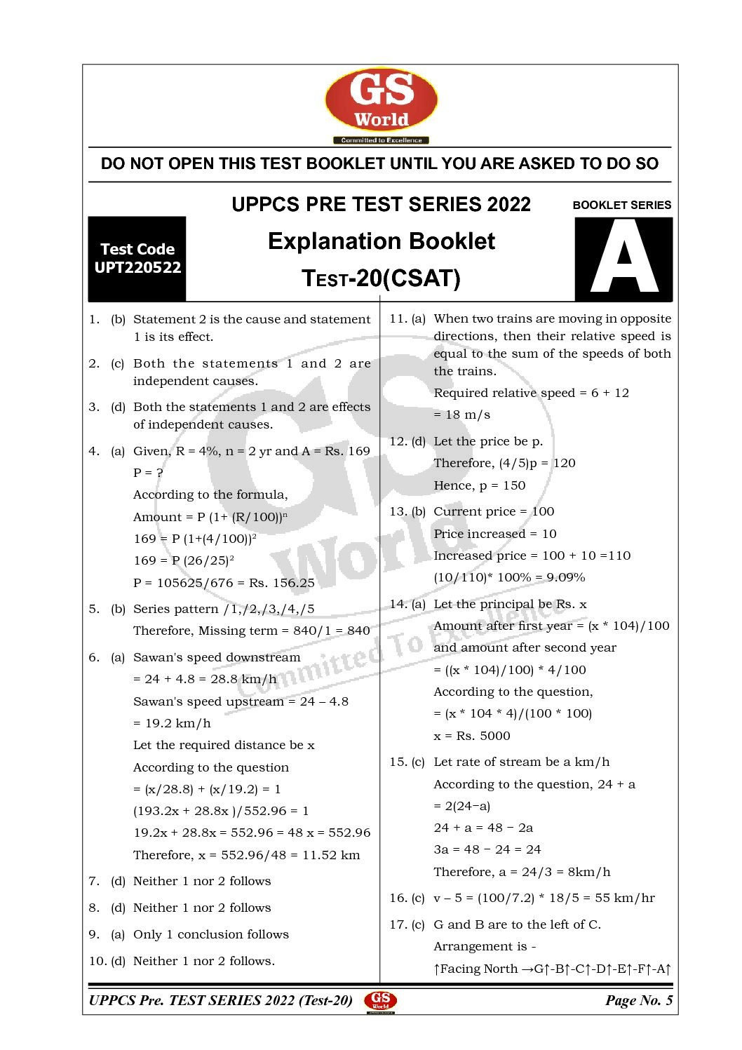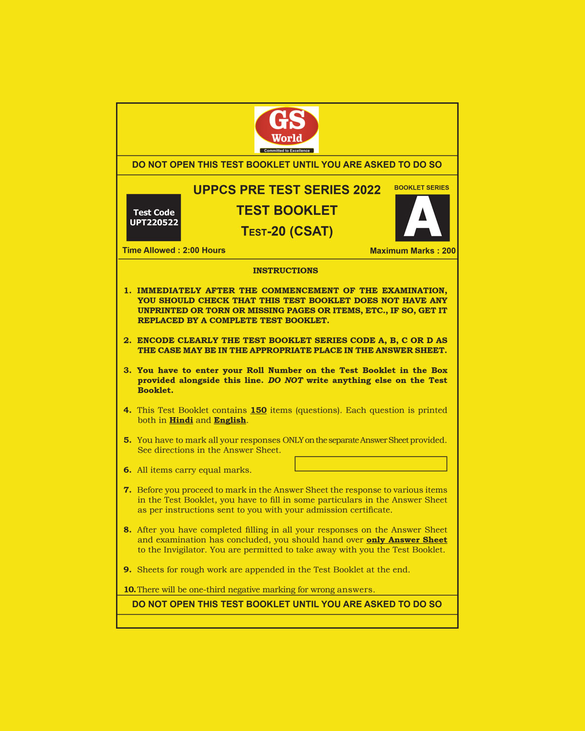 GS WORLD 2022 TEST-20-(UPPCS PRE TEST SERIES CSAT TEST 2022 ) (BLACK & WHITE)