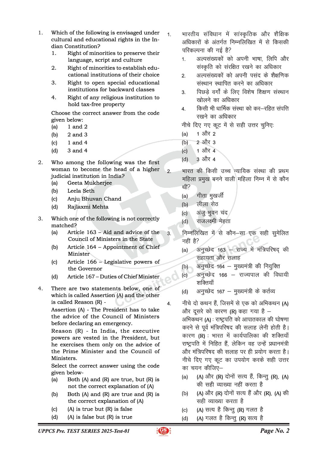 / GS WORLD 2025 TEST-1TO4 2025 FINAL (HINDI) {BLACK AND WHITE}