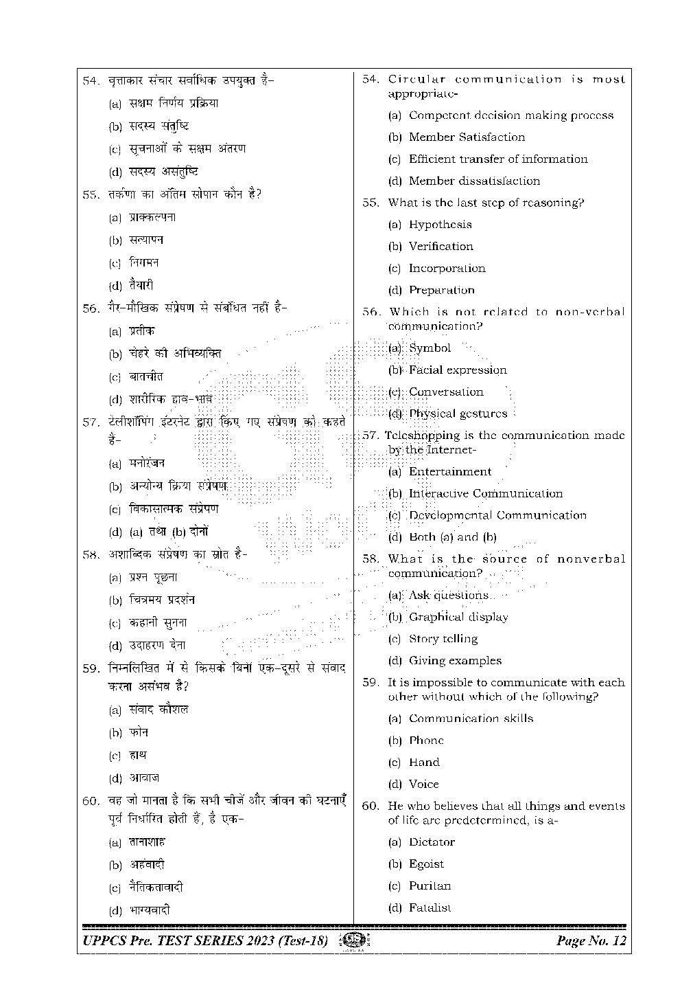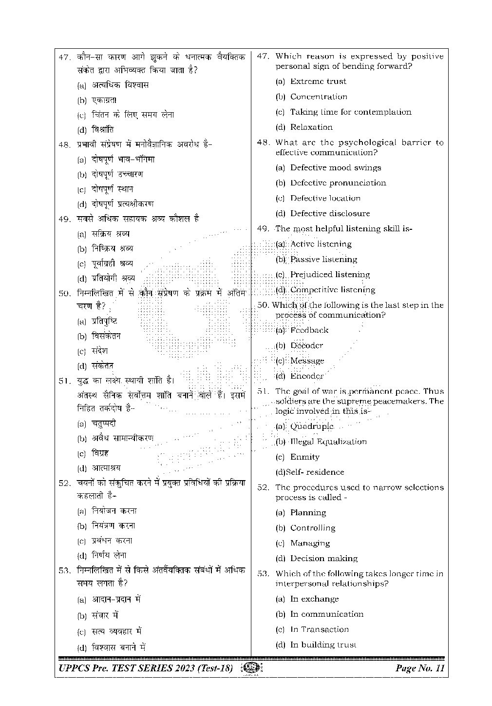 GS WORLD PRE 2023 CSAT TEST -18 BILINGUAL UPPCS (BLACK & WHITE)