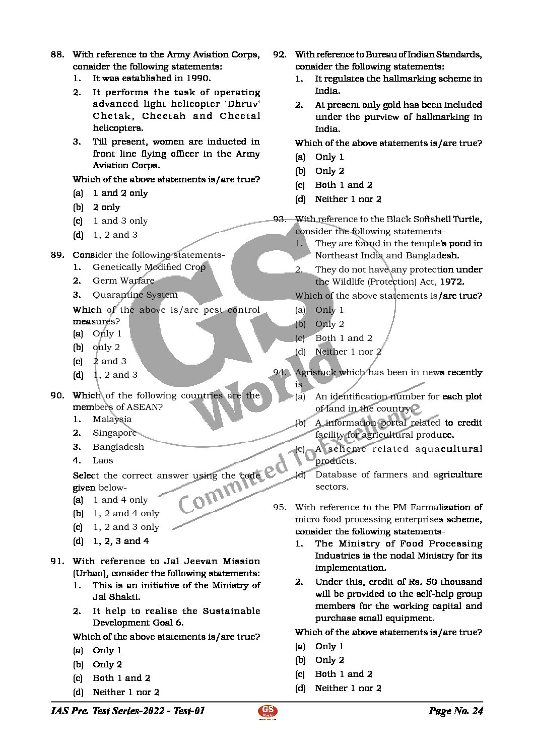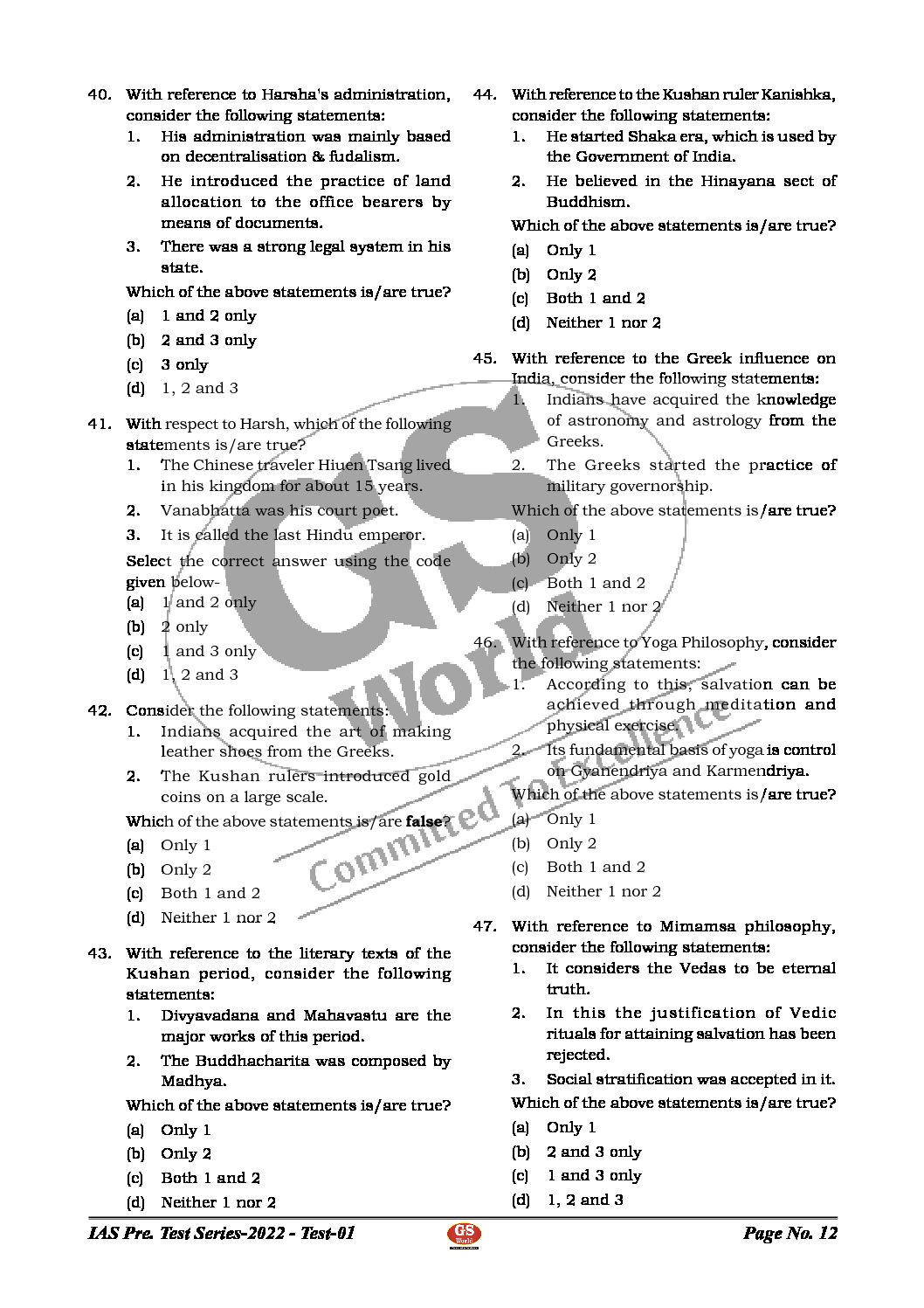 GS WORLD TEST-1-(ANCIENT HISTORY,CURRENT AFFAIRS -JUNE) 2022(BLACK & WHITE)