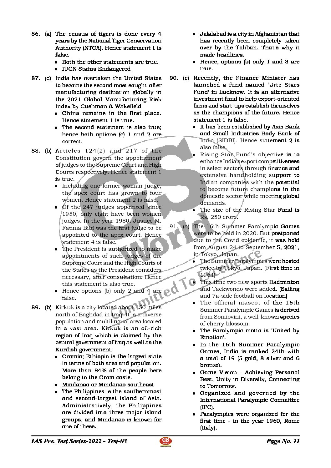 / GS WORLD TEST-3 (MODERN INDIA & CURRENT AFFAIRS AUGUST) 2022 (BLACK & WHITE)