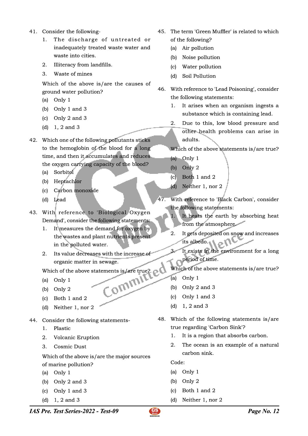 / GS WORLD TEST-9-(ENVIRONMENT 1ST & CURRENT AFFAIRS FEBRUARY) 2022 (BLACK & WHITE)