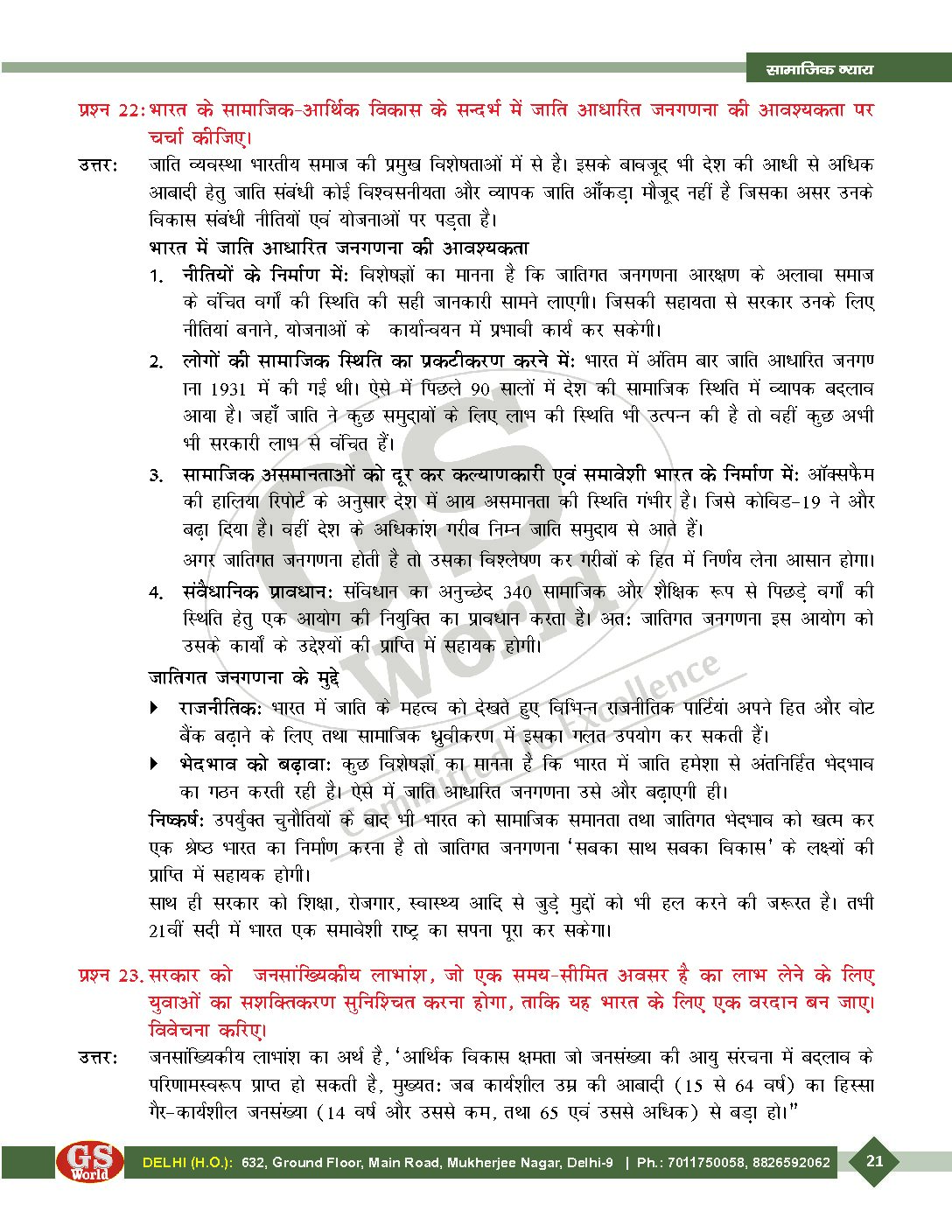 GS WORLD UPPCS MAINS 2022 GENERAL STUDIES PAPER-II (EXPECTED QUESTION –ANSWERS)(SOCIAL JUSTICE , POLITY & GOVERNANCE , INTERNATIONAL RELATIONS ) HINDI MEDIUM (BLACK & WHITE)