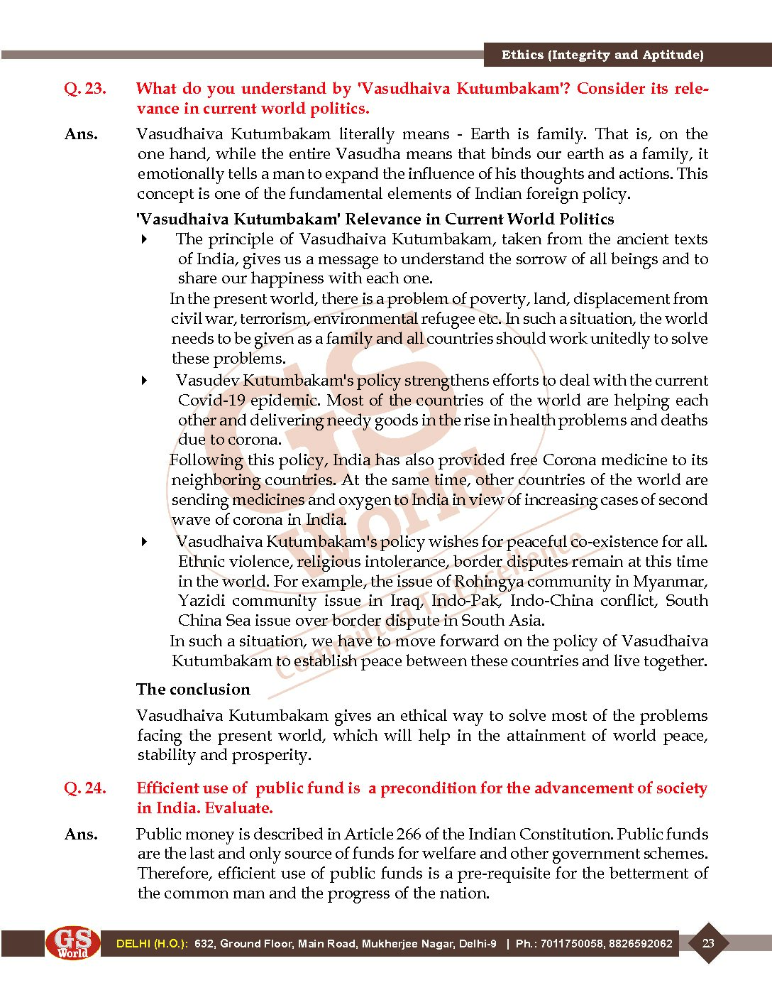 / GS WORLD UPPCS MAINS 2022 GENERAL STUDIES PAPER-IV (EXPECTED QUESTION ANSWERS) (BLACK & WHITE)