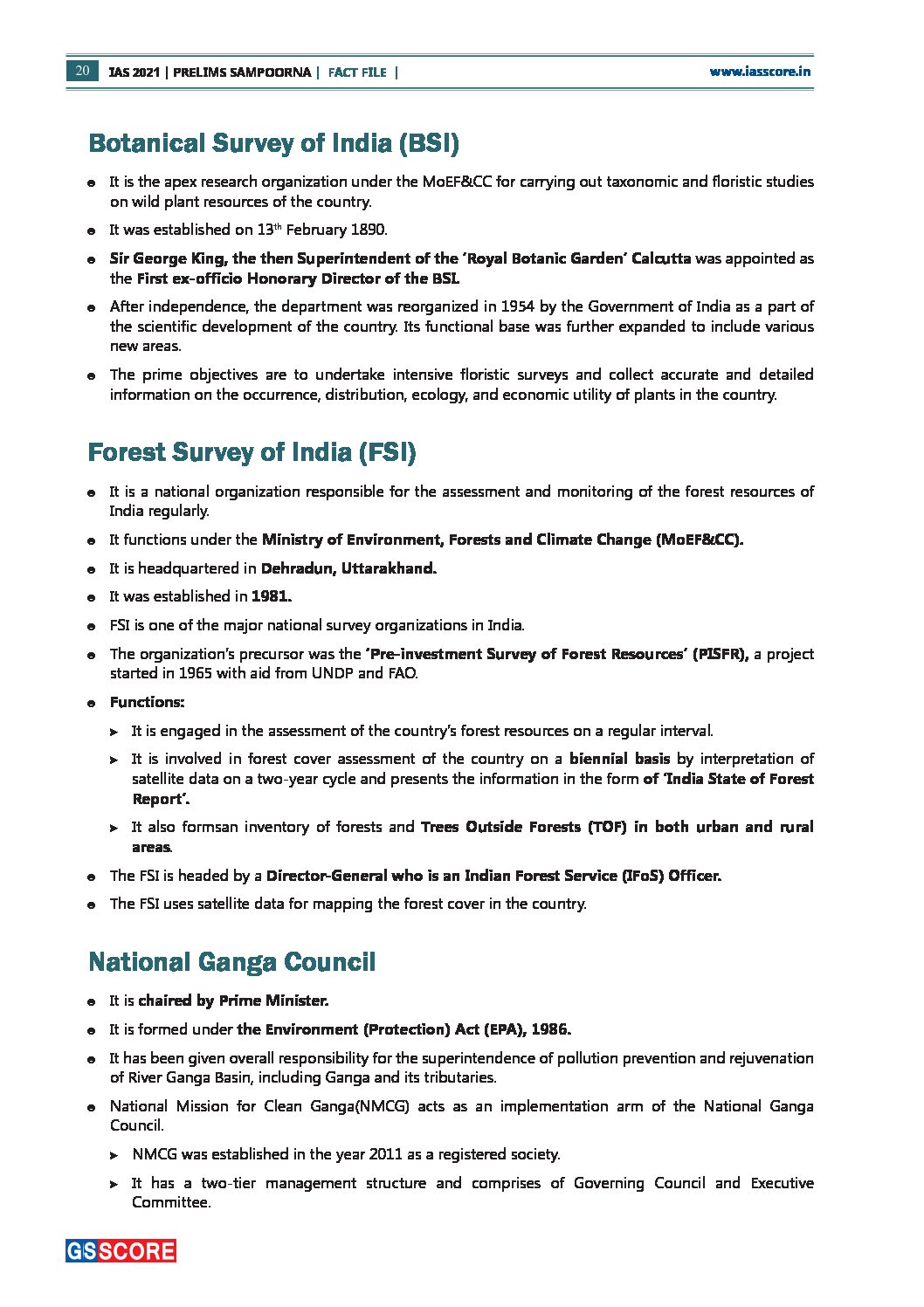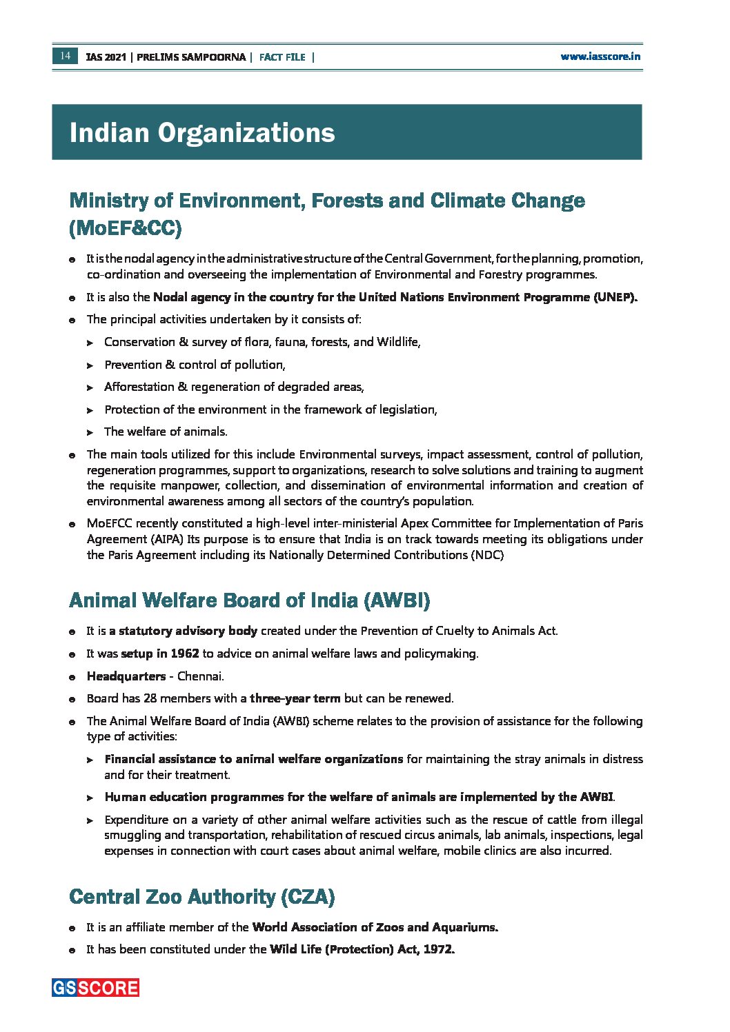 GSSCORE IAS 2021 PRELIMS SAMPOORNA FACT FILE ENVIRONMENT ORGANIZATIONS & CONVENTIONS