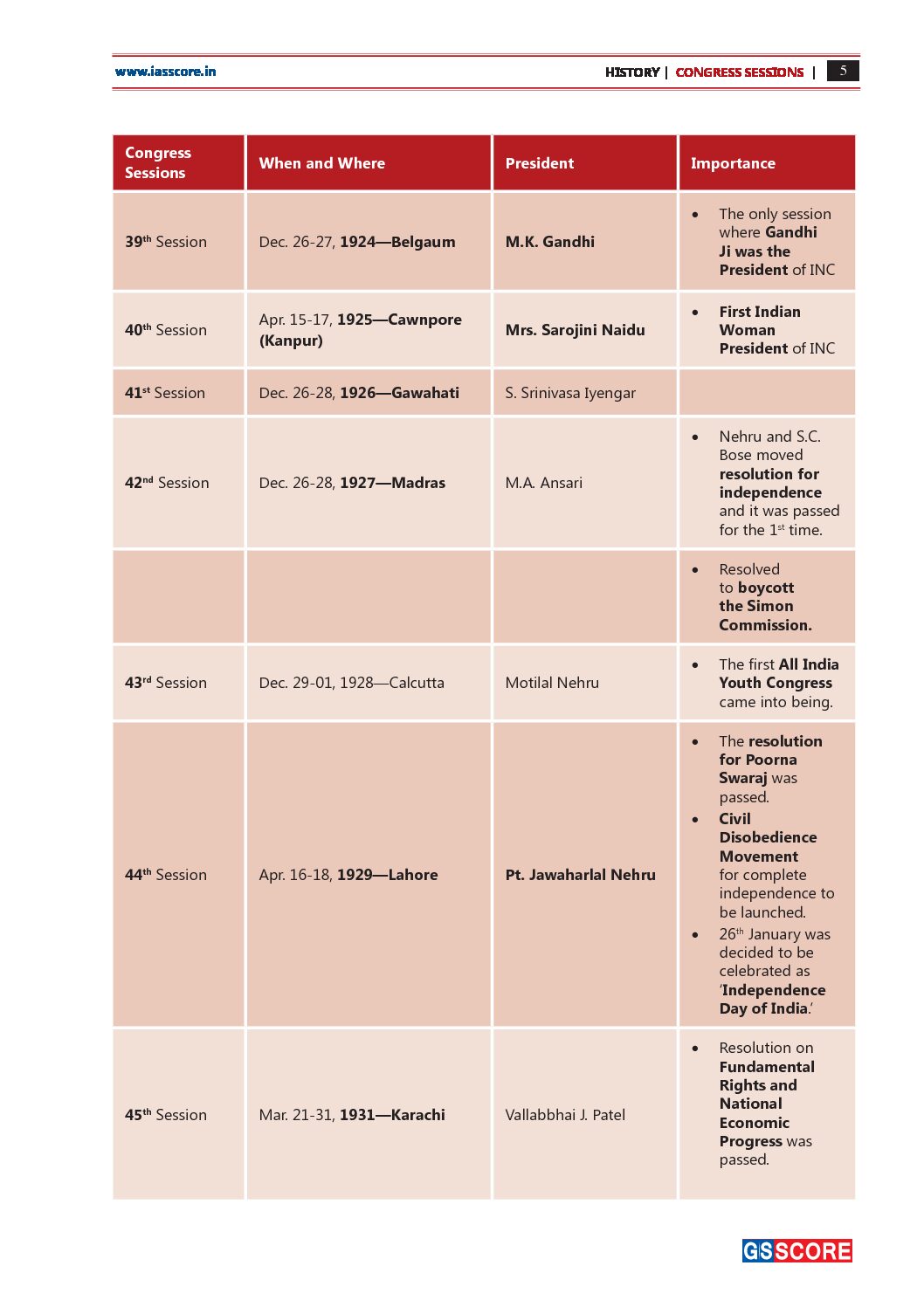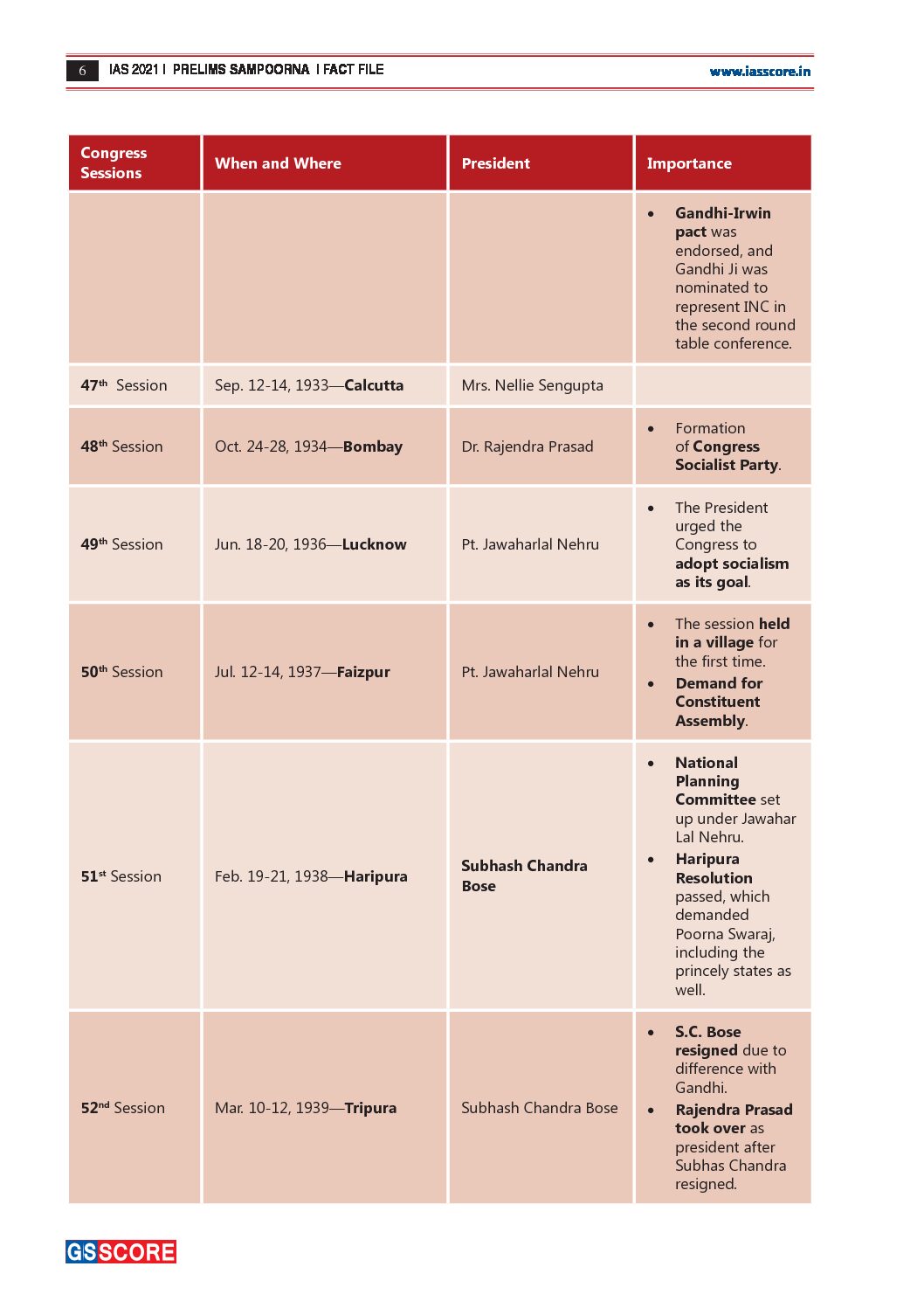 / GSSCORE IAS 2021 PRELIMS SAMPOORNA FACT & FILES HISTORY CONGRESS SESSIONS