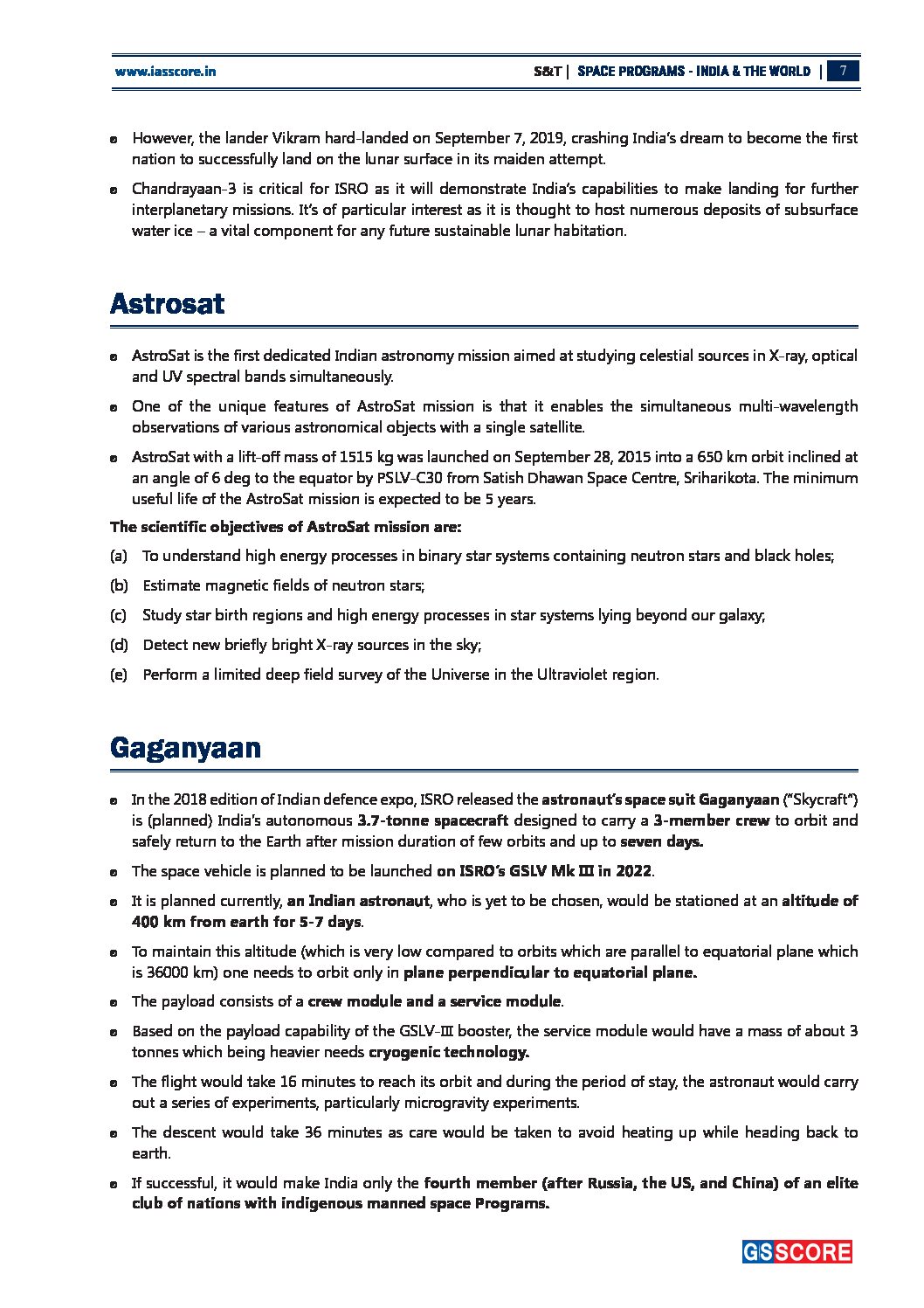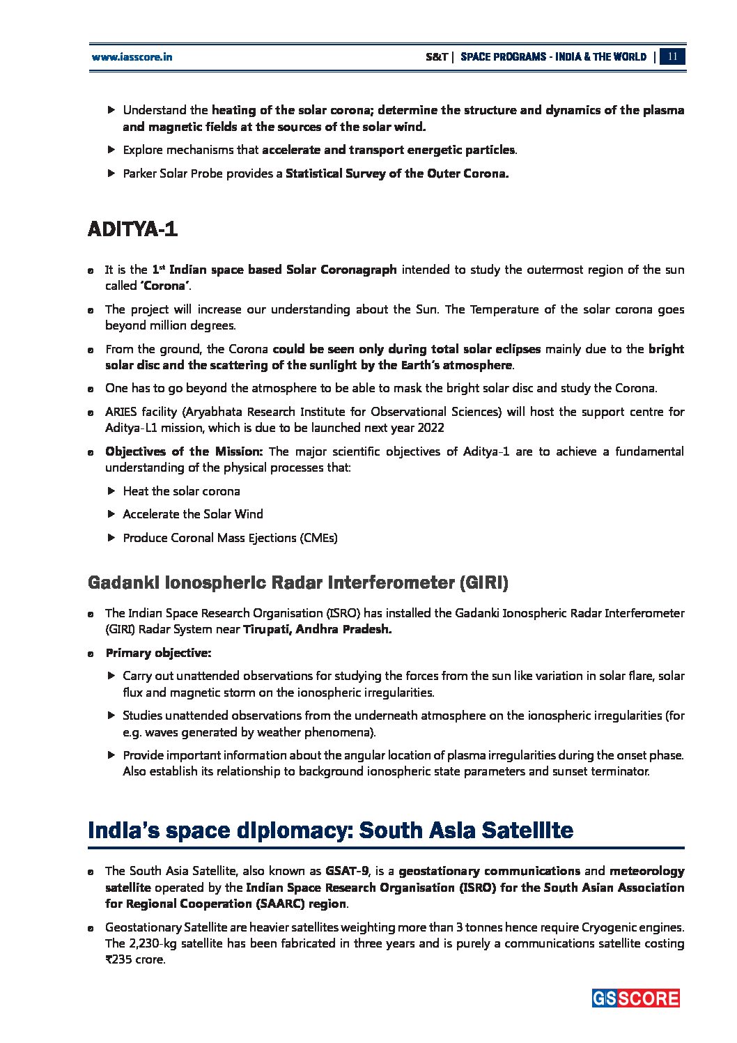 GSSCORE IAS 2021 PRELIMS SCIENCE & TECHNOLOGY- SPACE PROGRAMS IN INDIA & THE WORLD