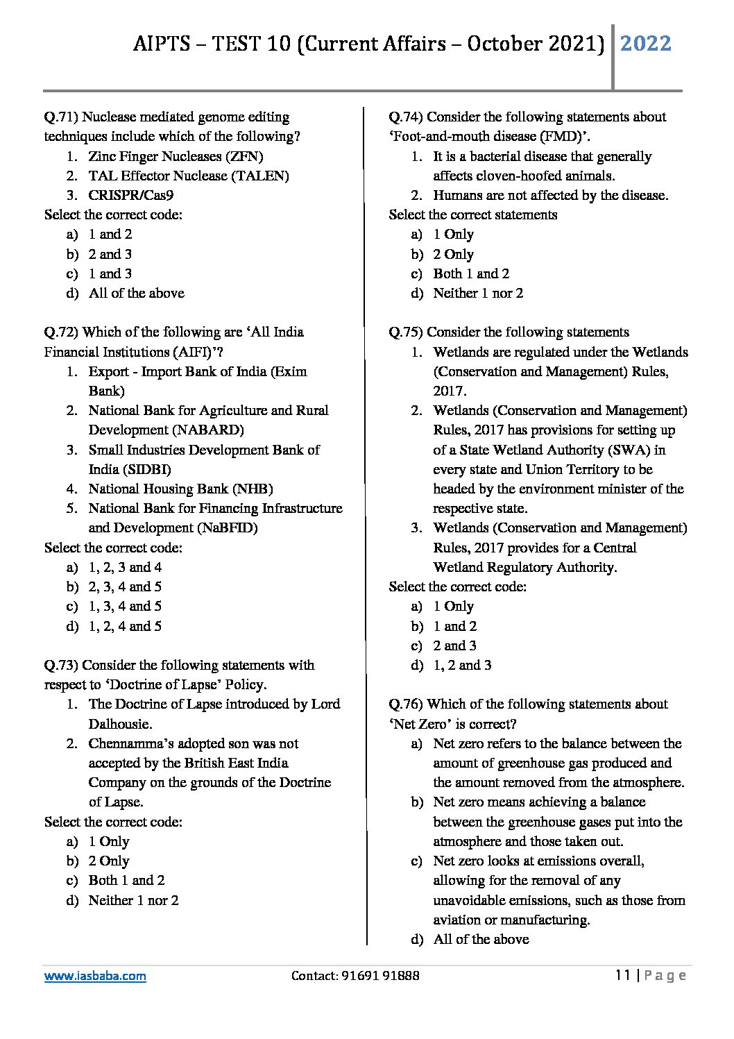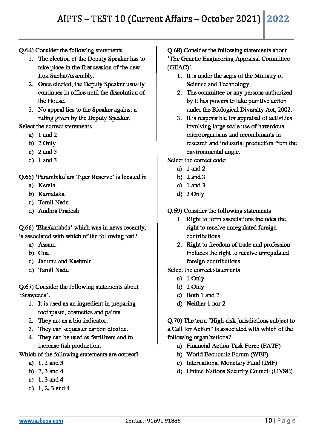 / IAS BABA 2022 AIPTS TEST-10 (RAPID REVISION)-2022 (BLACK & WHITE)