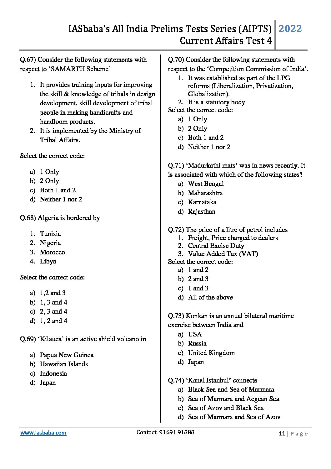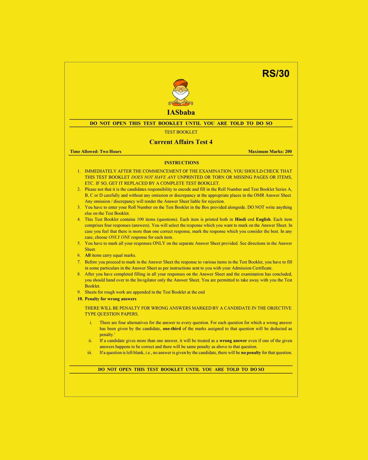 / IAS BABA 2022 AIPTS TEST-4 (CURRENT AFFAIRS ) 2022 (BLACK & WHITE)