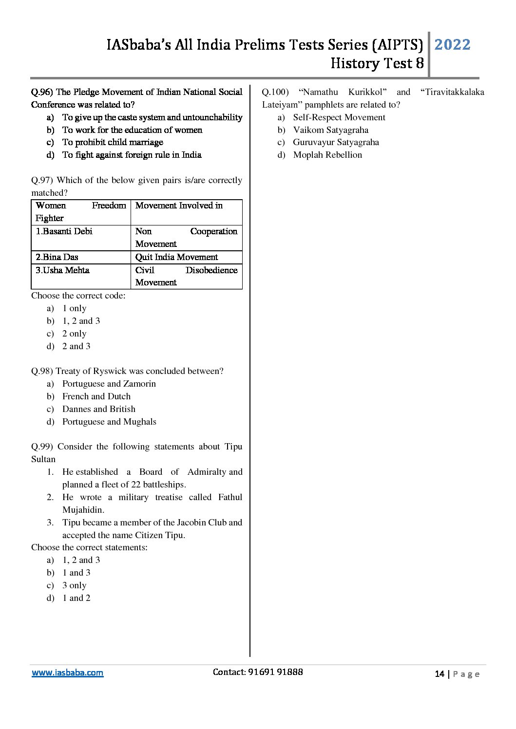 / IAS BABA 2022 AIPTS TEST-8 (HISTORY ) 2022 (BLACK & WHITE)