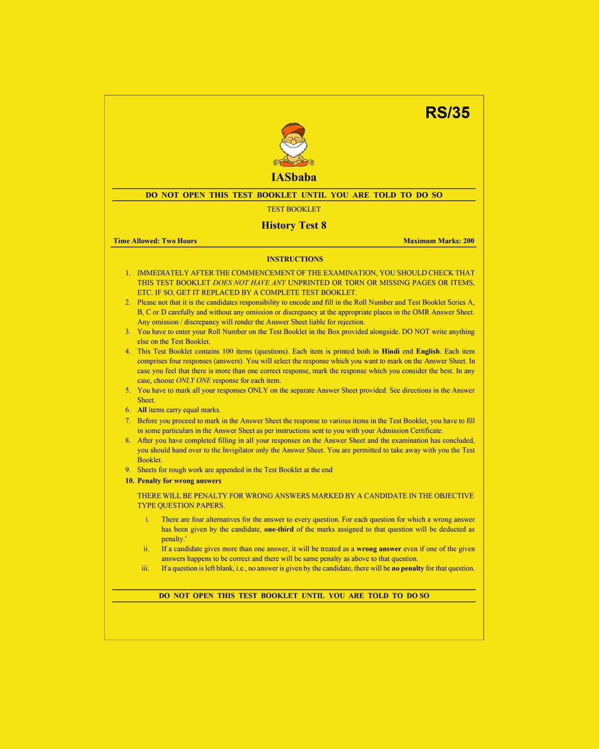 IAS BABA 2022 AIPTS TEST-8 (HISTORY ) 2022 (BLACK & WHITE)