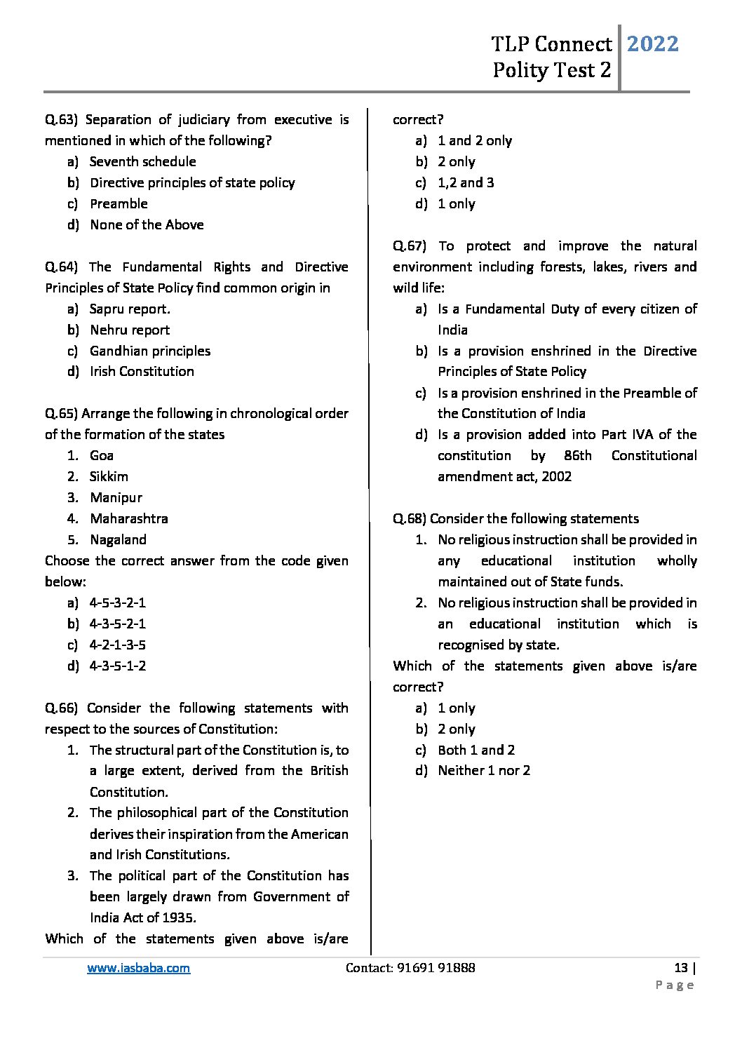 IAS BABA 2022 TLP CONNECT TEST-2- POLITY -2022 (BLACK & WHITE)