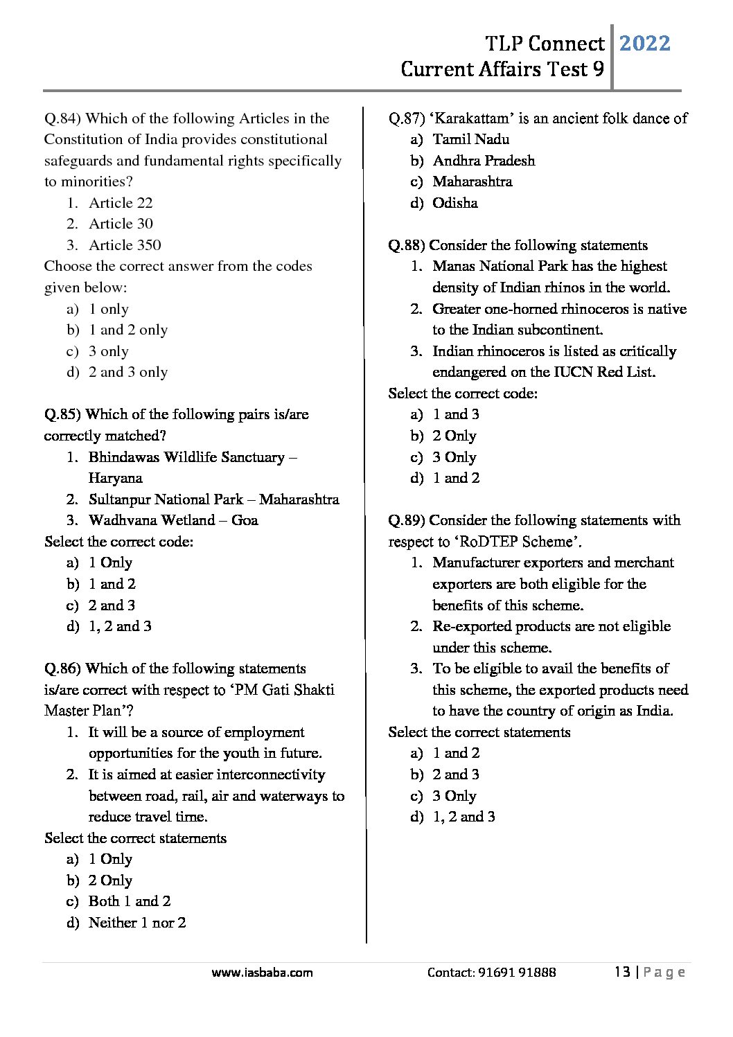 / IAS BABA 2022 TLP CONNECT TEST-9- CURRENT AFFAIRS -2022 (BLACK & WHITE)