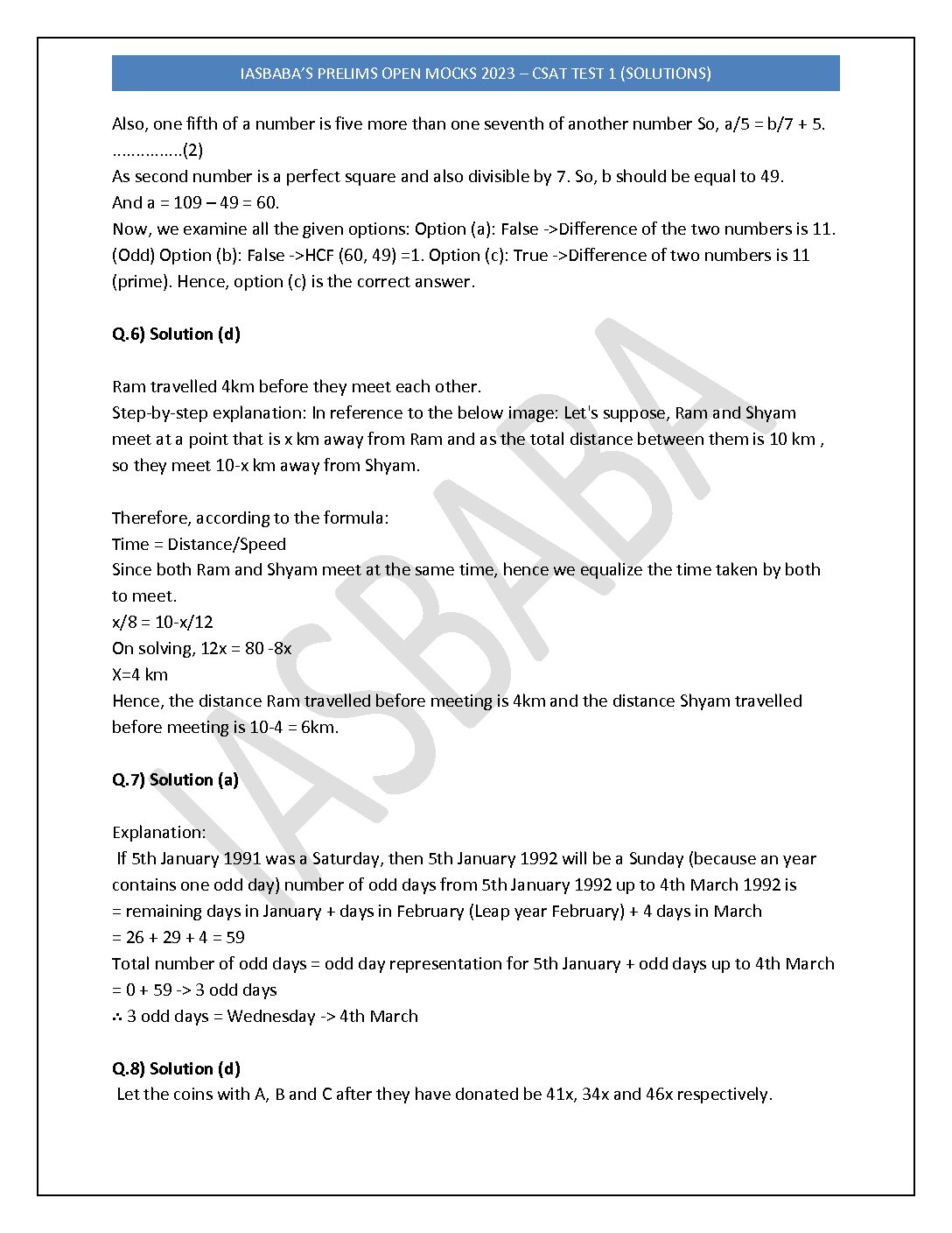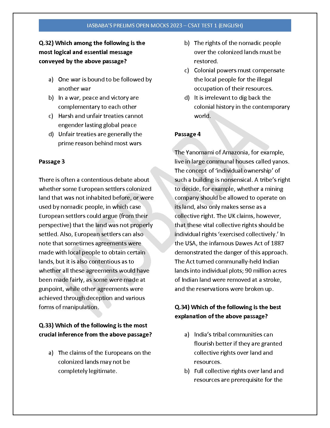 IAS BABA 2023 PRELIMS OPEN MOCK TEST-01 (QUES+ SOLUTION) PAPER2-CSAT BLACK & WHITE