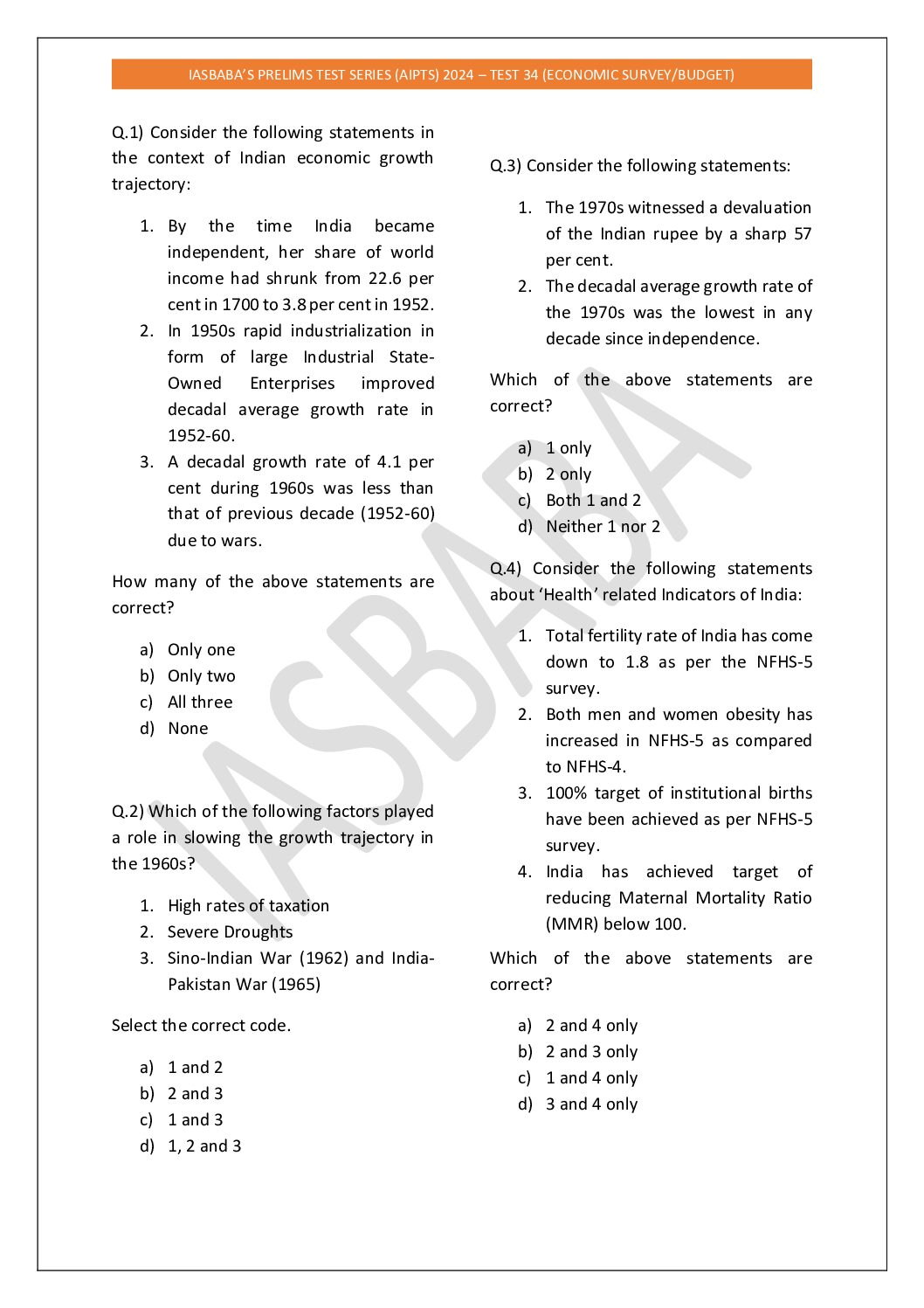 / IAS BABA 2024 AIPTS TEST-34 ECONOMIC SURVEY & BUDGET 2024 FINAL {ENGLISH} {BLACK AND WHITE}