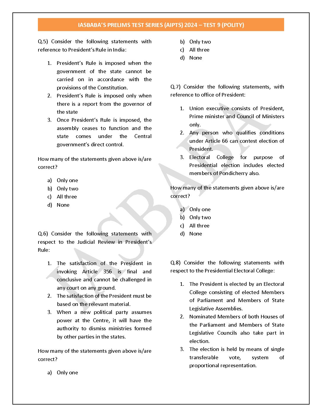 / IAS BABA 2024 AIPTS TEST-9 2024 {POLITY} FINAL {ENGLISH} {BLACK AND WHITE}