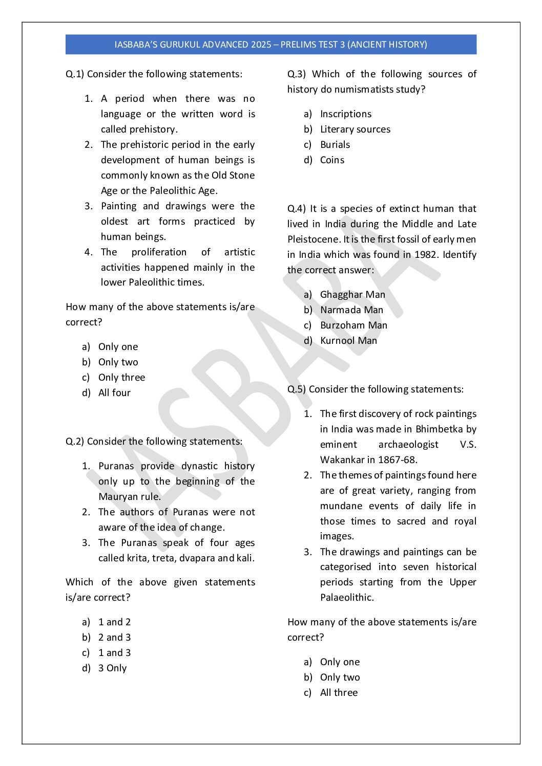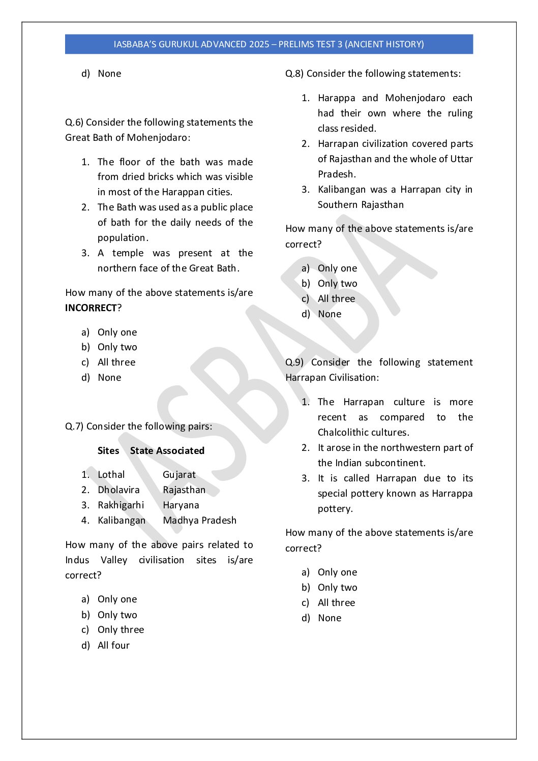 IAS BABA 2025 TLP CONNECT PT TEST-3 ANCIENT HISTORY 2025 FINAL (ENGLISH) {BLACK AND WHITE}