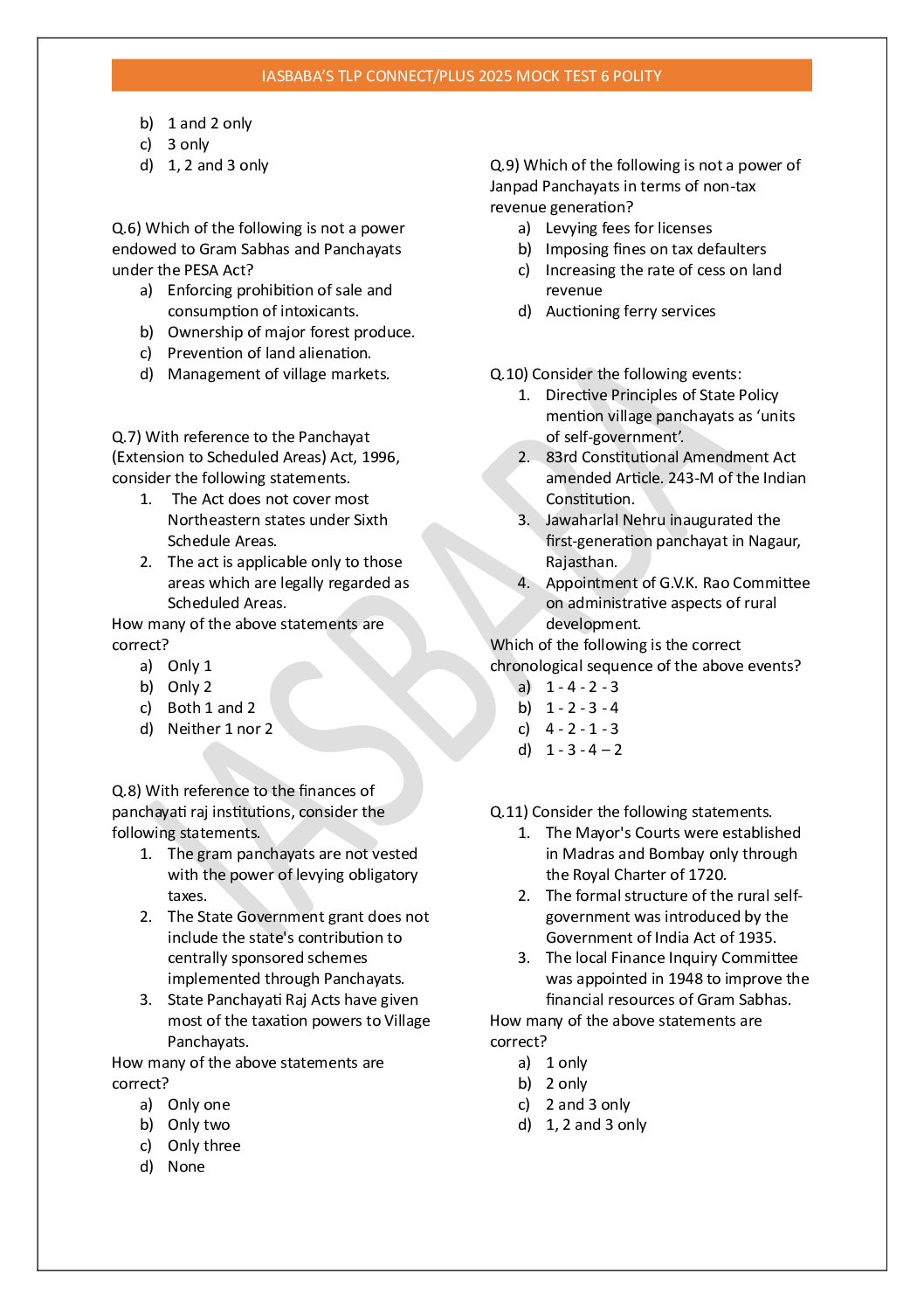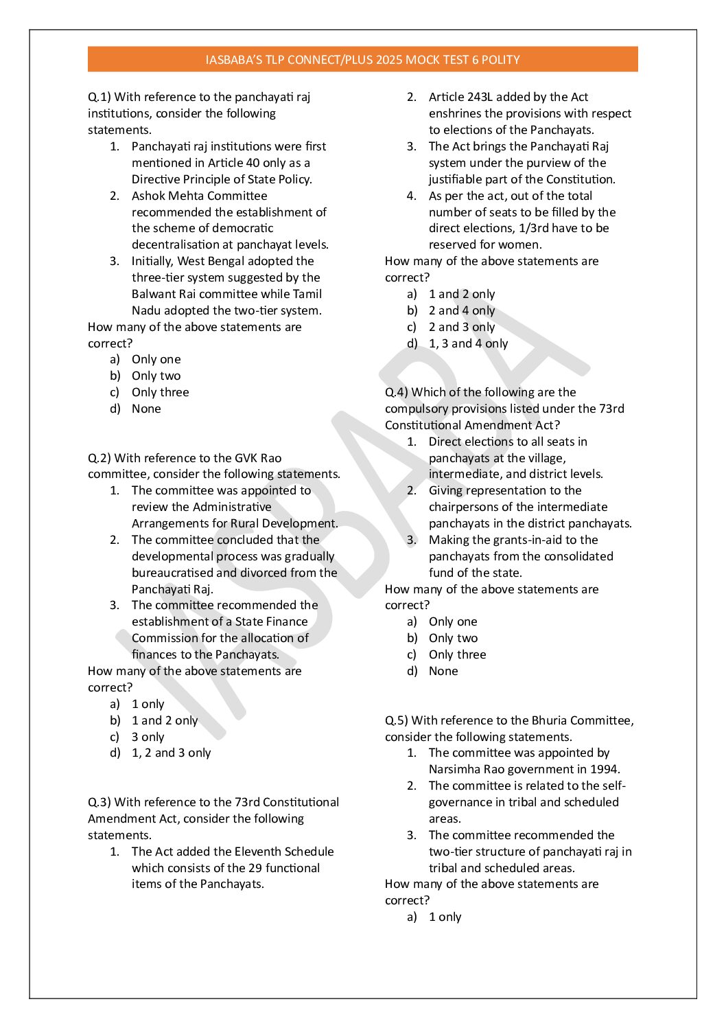 / IAS BABA 2025 TLP CONNECT PT TEST-6 POLITY 2025 FINAL (ENGLISH) {BLACK AND WHITE}