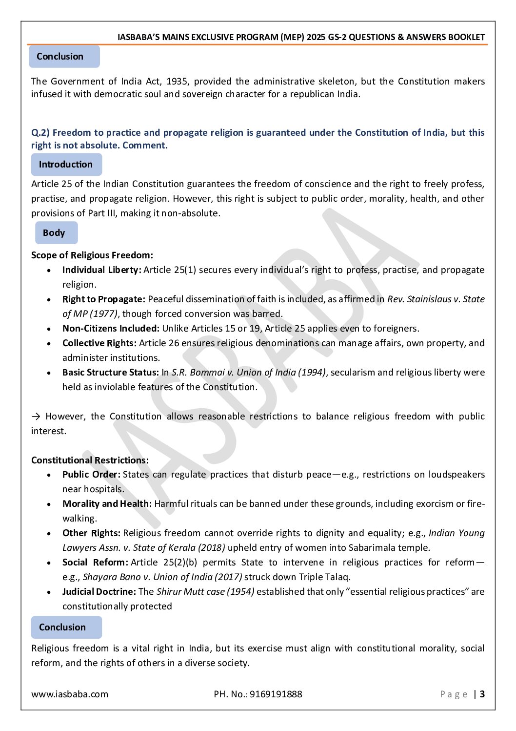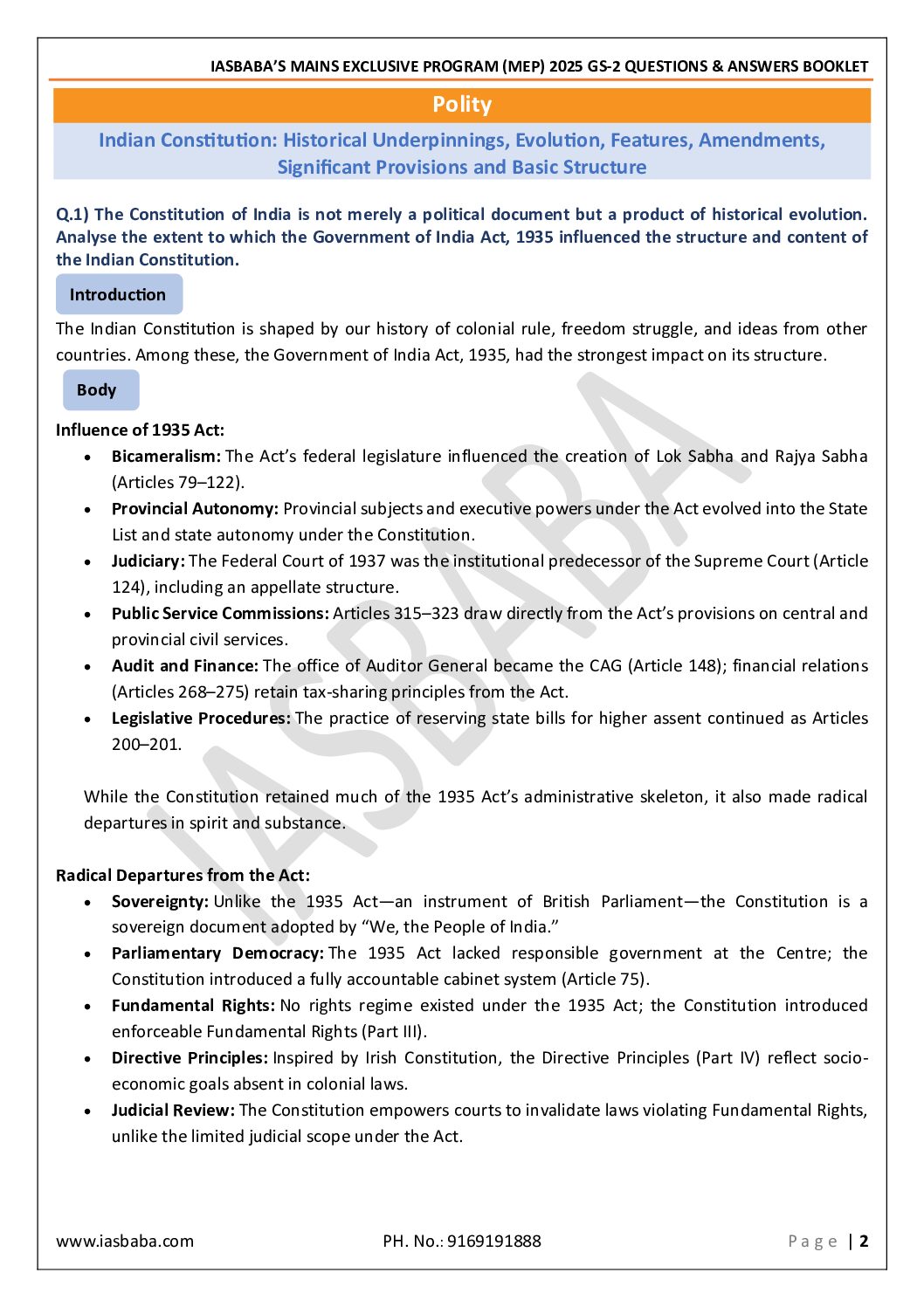 IAS BABA 2026 MAINS EXCLUSIVE PROGRAM GS-2 (2026) FINAL (ENGLISH) {BLACK AND WHITE}