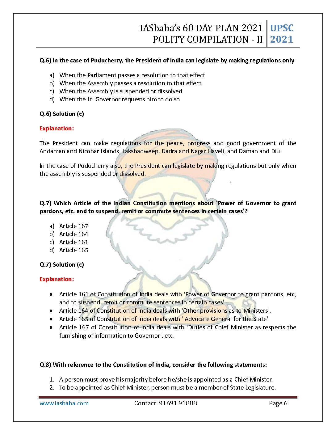 IAS BABA 60 DAYS PLAN PRELIMS 2021 COMPILATIONS PART-2- POLITY