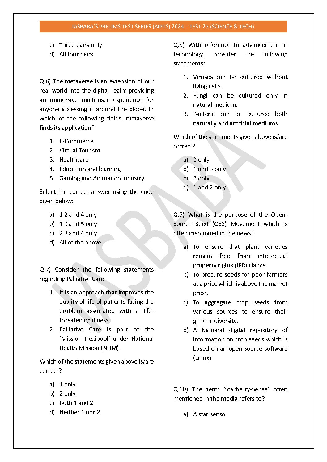 / IAS BABA AIPTS 2024 TEST-25 2024 {SCIENCE & TECH} FINAL {ENGLISH} {BLACK AND WHITE}