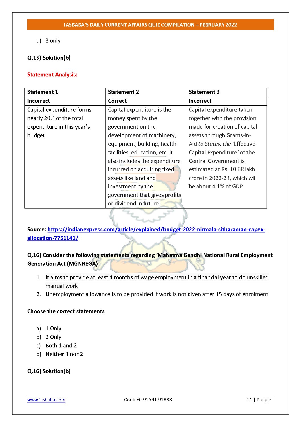 / IAS BABA CURRENT AFFAIRS QUIZ COMPILATION UPSC FEBRUARY-2022 (BLACK & WHITE)