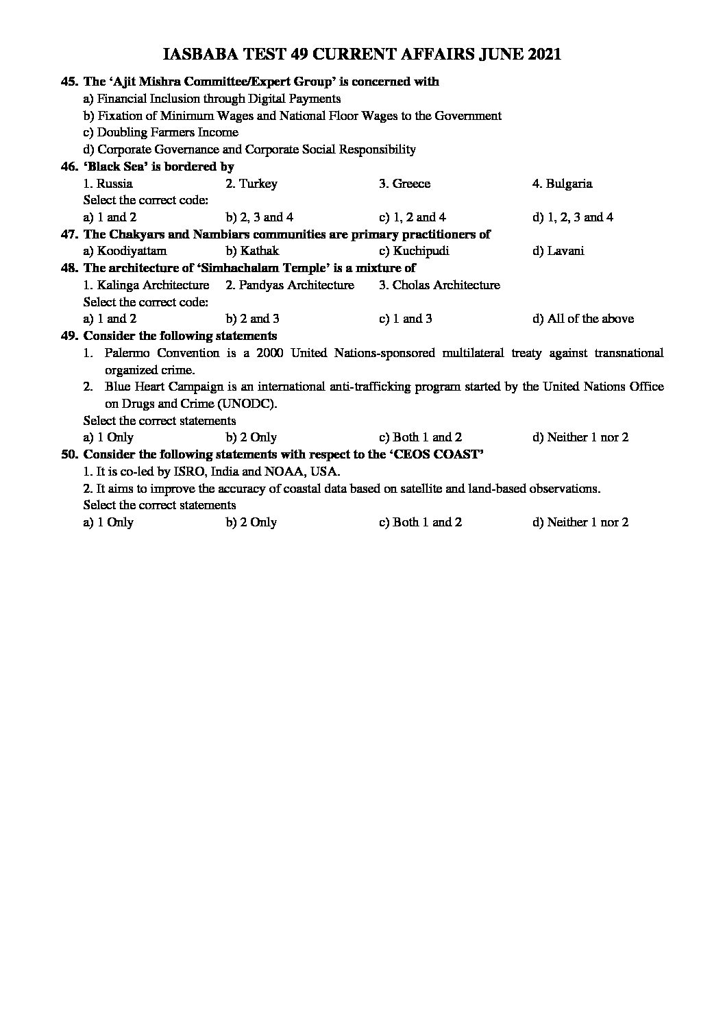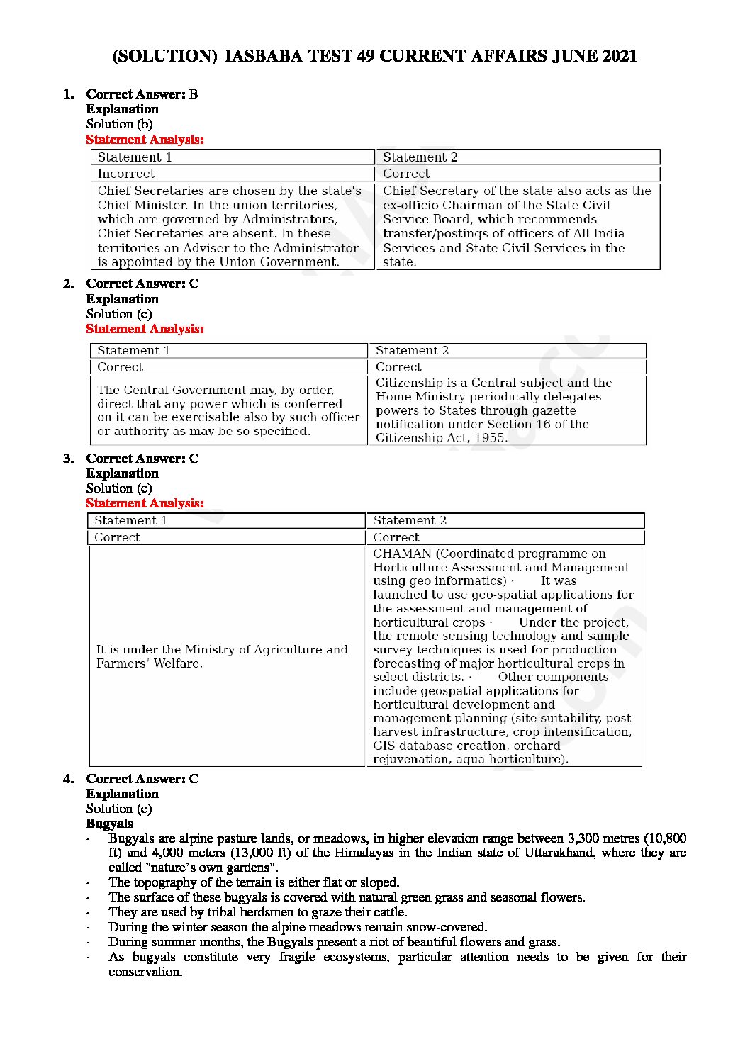 / IAS BABA PT TEST- 49 WITH SOLUTIONS CURRENT AFFAIRS JUNE 2021