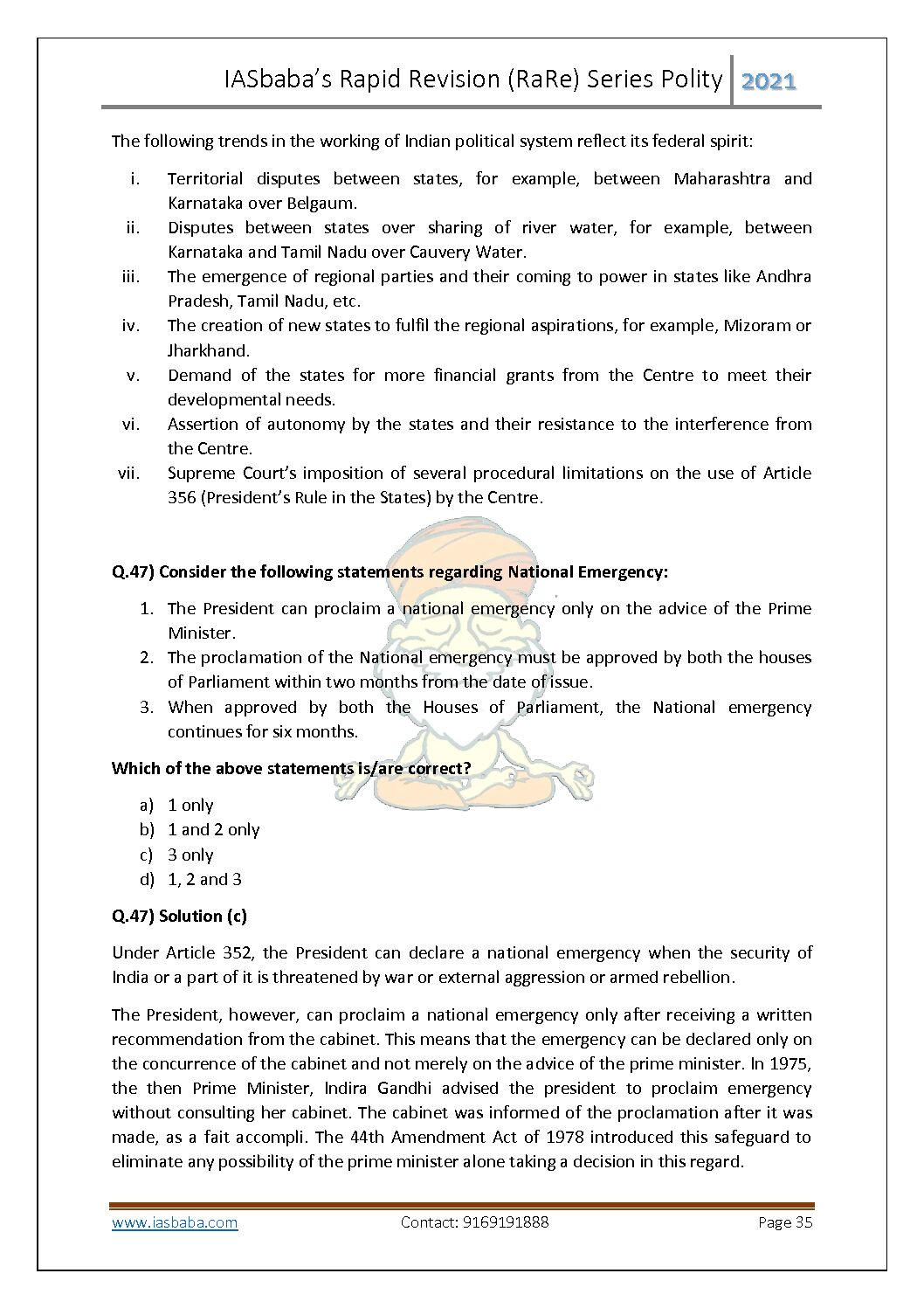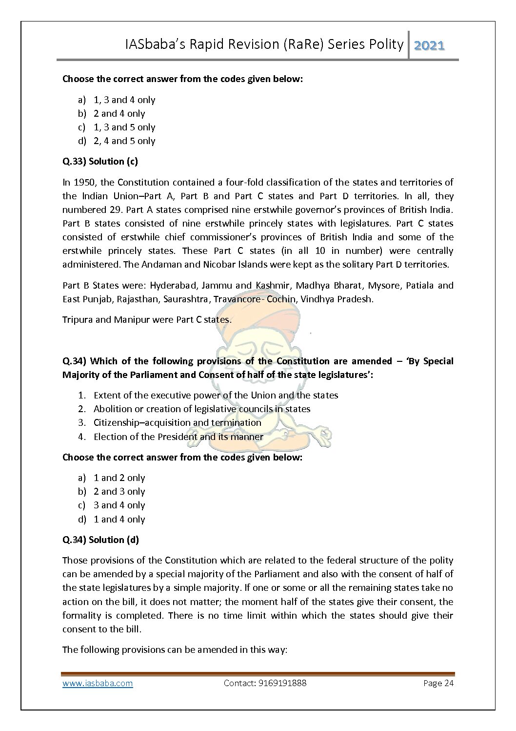 IAS BABA RAPID REVISION SERIES- STATIC QUIZ (FULL COMPILATION) POLITY 2021 quantity