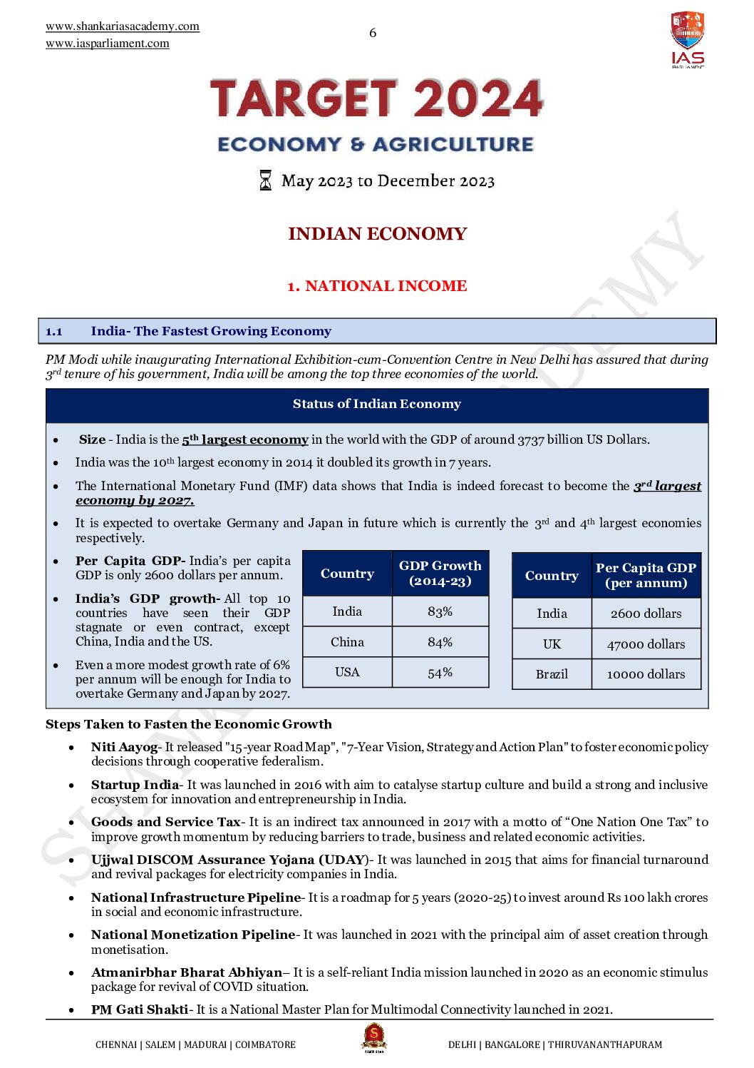 IAS PARILAMENT TARGET PRELIMS 2024 ECONOMIC & AGRICULTURE 2024 FINAL {MAY 2023 TO DEC2023} {ENGLISH} {BLACK AND WHITE}