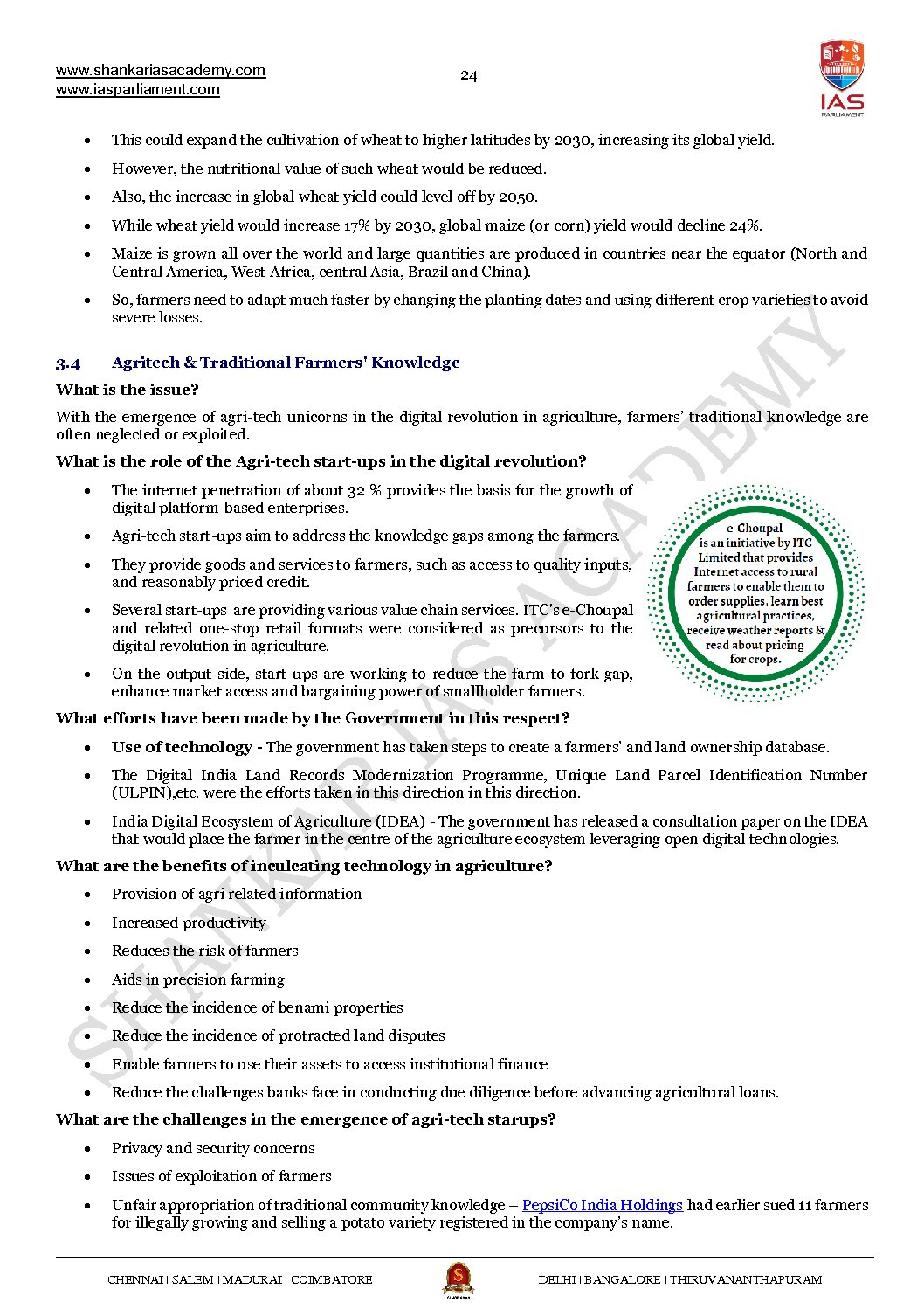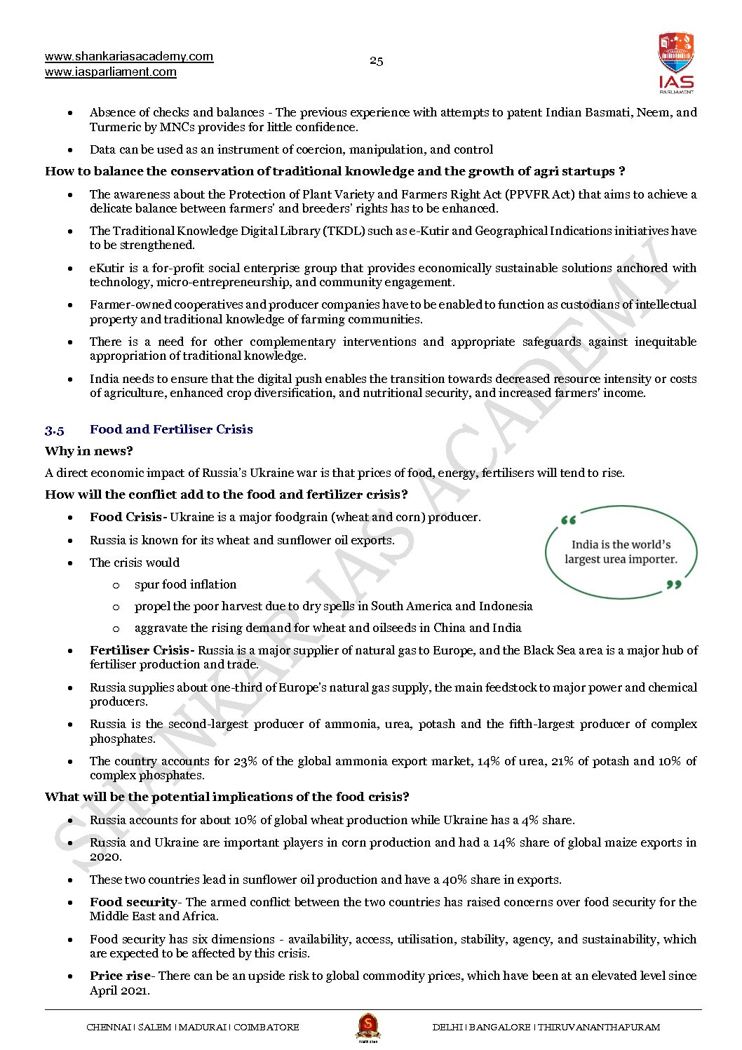 / IAS PARLIAMENT MAINSTORMING 2022 AGRICULTURE (SEP 2021 TO MAY 2022 ) (BLACK & WHITE)