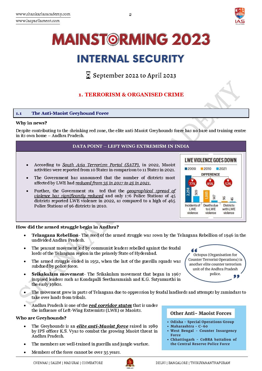/ IAS PARLIAMENT MAINSTORMING 2023 INTERNAL SECURITY (SEP 2022 TO APRIL 2023) ENGLISH MEDIUM (BLACK & WHITE)