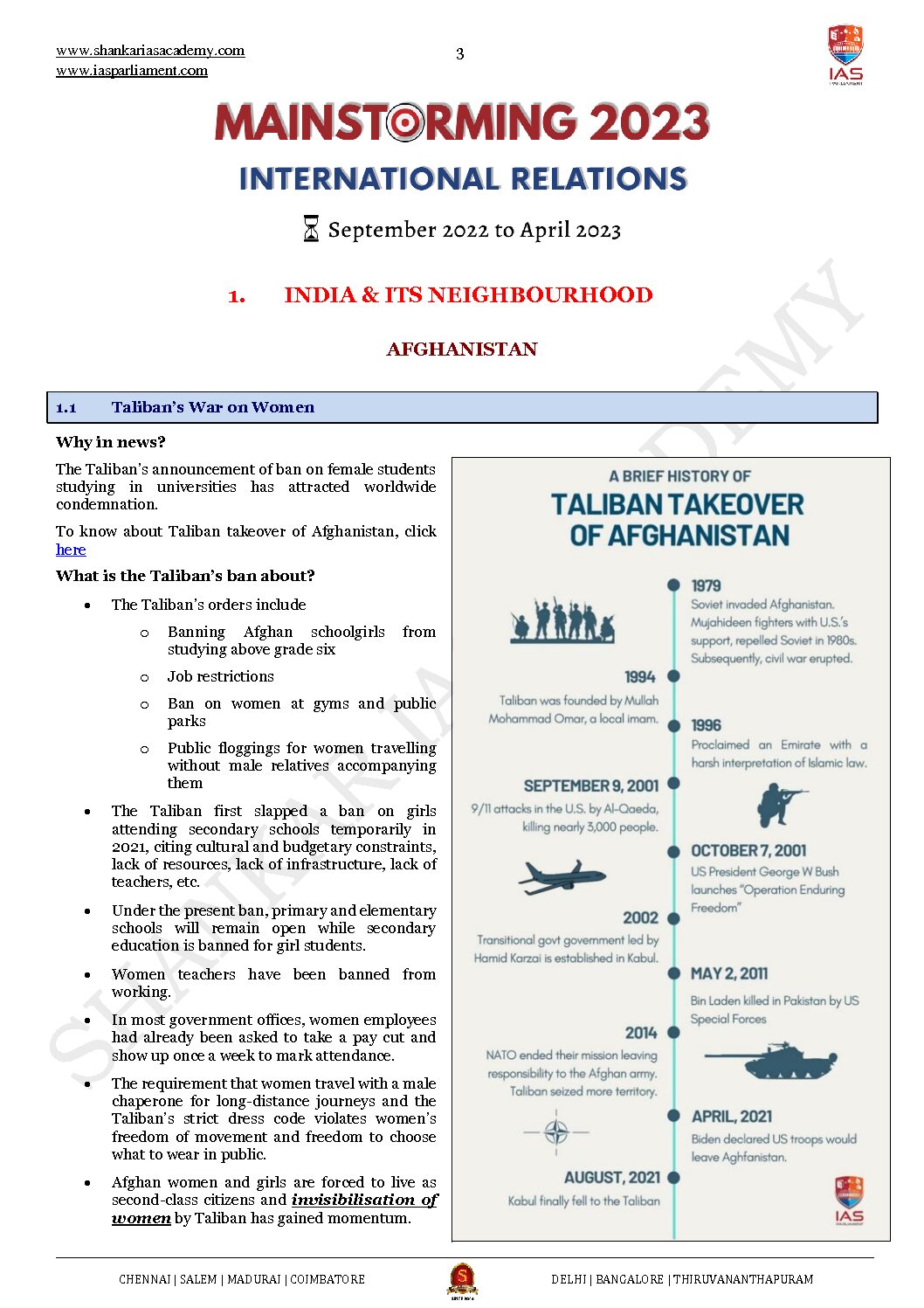 IAS PARLIAMENT MAINSTORMING 2023 INTERNATIONAL RELATIONS (SEP 2022 TO APRIL 2023) ENGLISH MEDIUM (BLACK & WHITE)