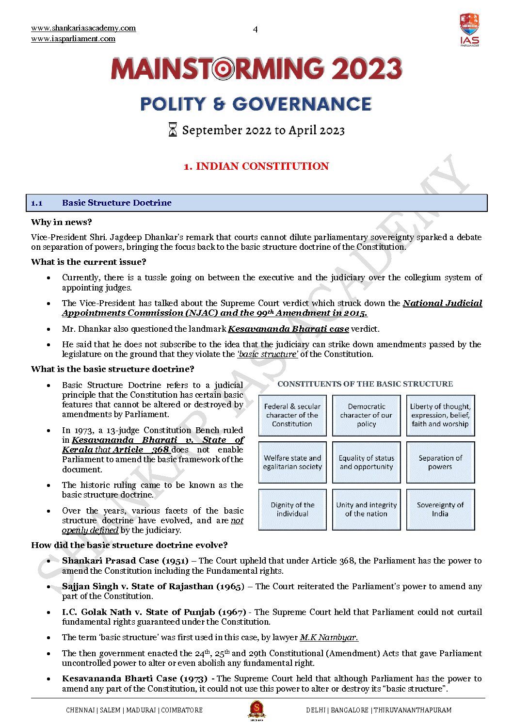 / IAS PARLIAMENT MAINSTORMING 2023 POLITY & GOVERNANCE (SEP 2022 TO APRIL 2023) ENGLISH MEDIUM (BLACK & WHITE)