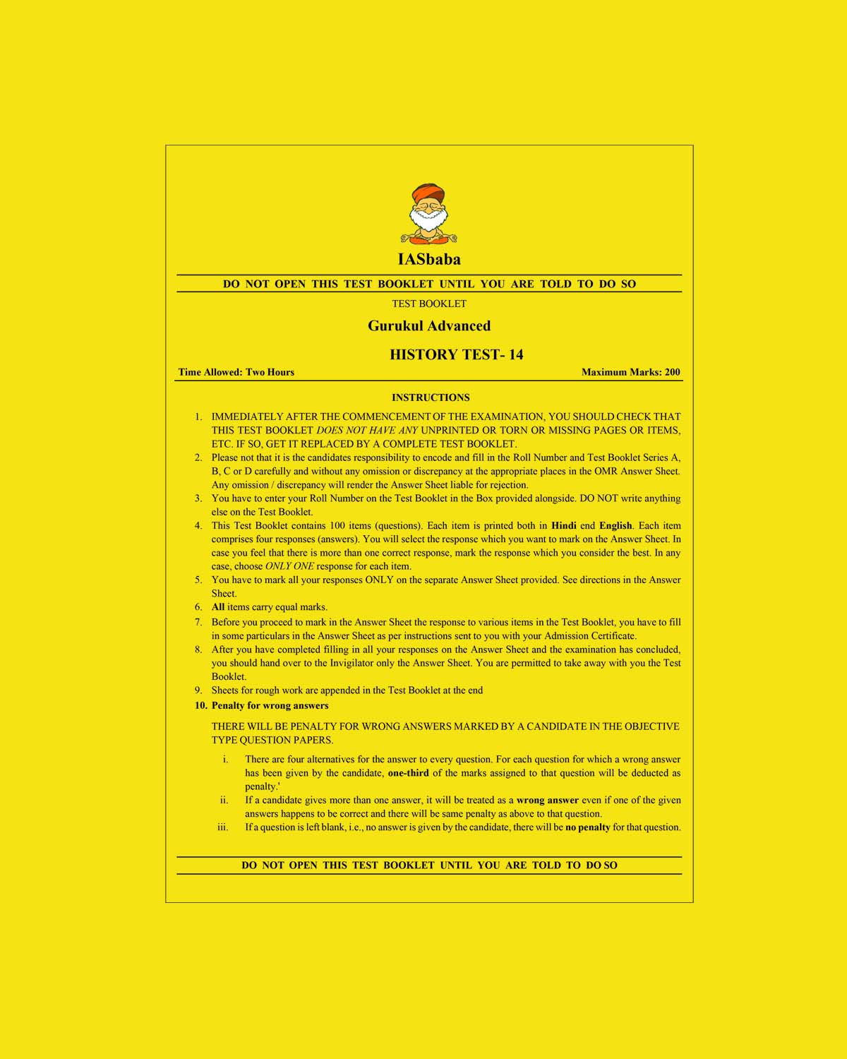 / IASBABA 2023 PT TEST-14 (GURUKUL ADVANCED HISTORY-4) (BLACK & WHITE)