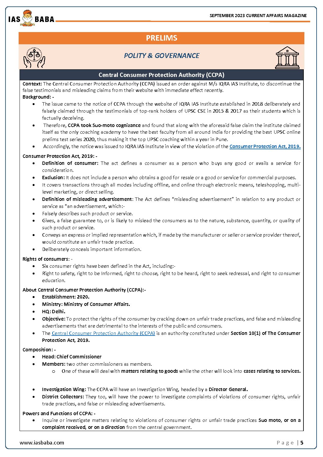 / IASBABA CURRENT AFFAIRS SEPTEMBER 2023 FINAL {ENGLISH} {BLACK AND WHITE}