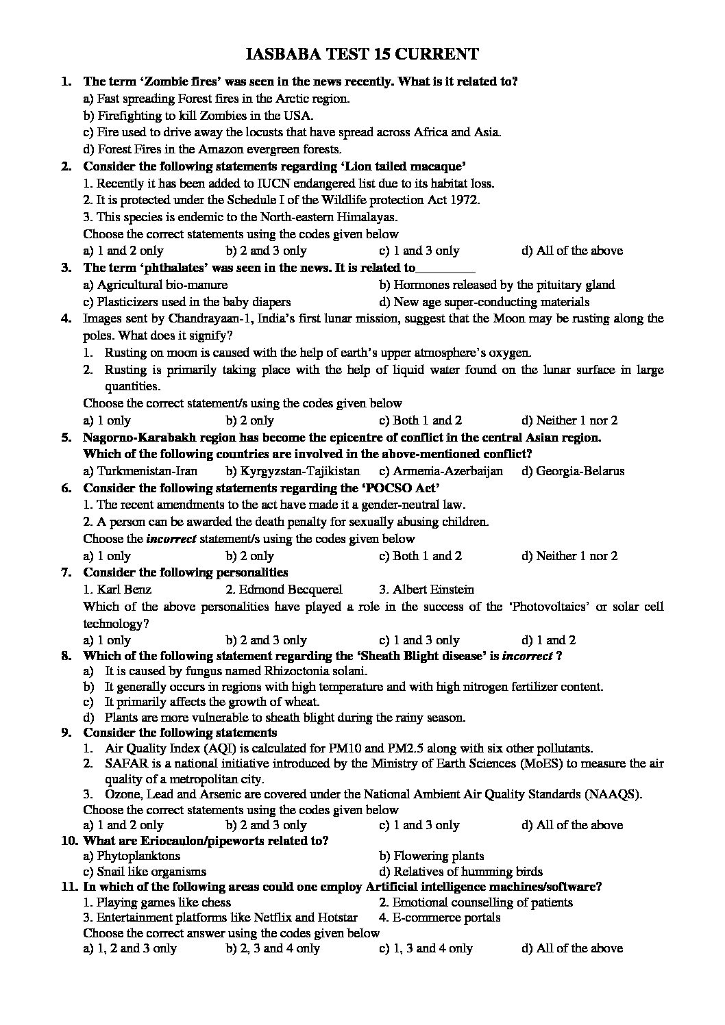 IASBABA PT TEST-15 WITH SOLUTION (CURRENT AFFAIRS 1-14 OCTOBER 2020) 2021 quantity