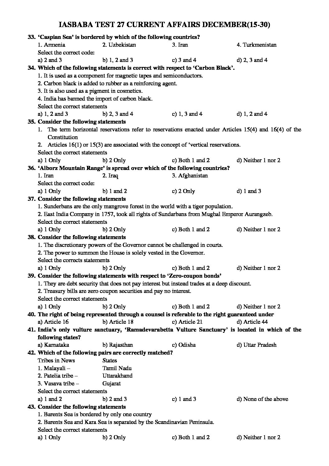 IASBABA PT TEST-27 WITH SOLUTION (CURRENT AFFAIRS 15-30 DECEMBER 2020) 2021