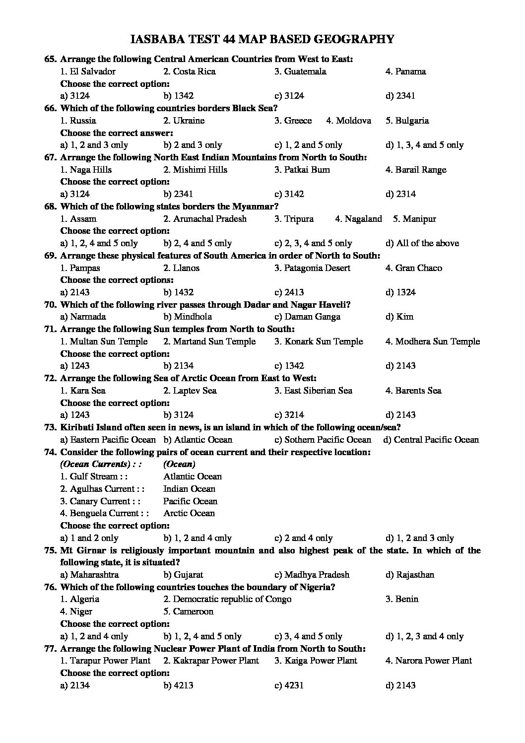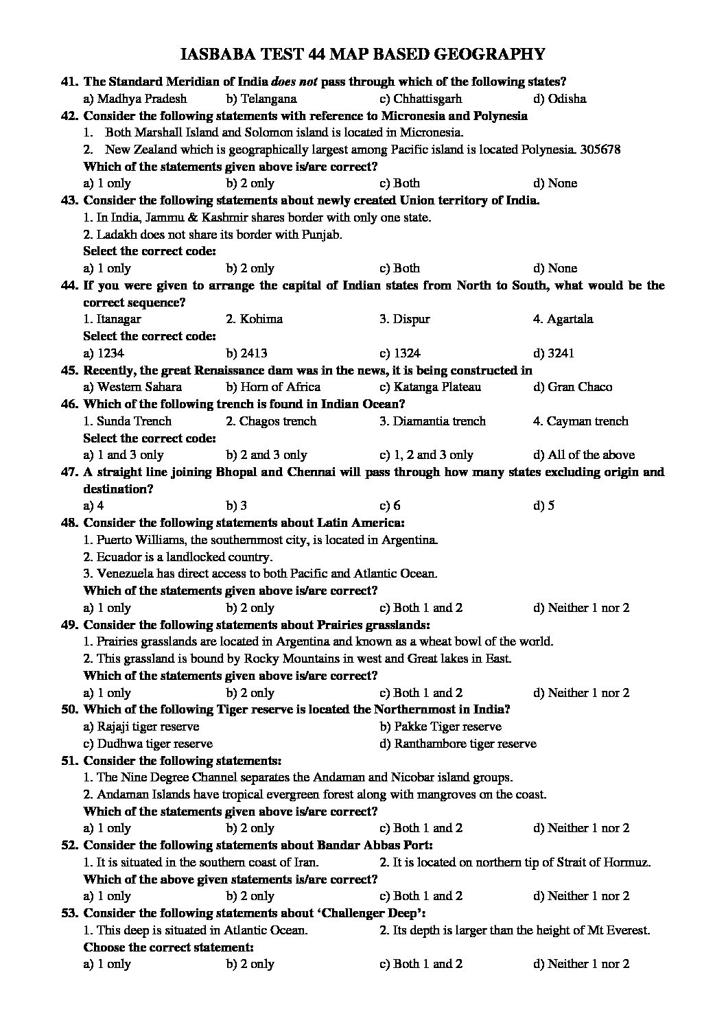 IASBABA PT TEST-44 WITH SOLUTION ( MAP BASED GEOGRAPHY) 2021