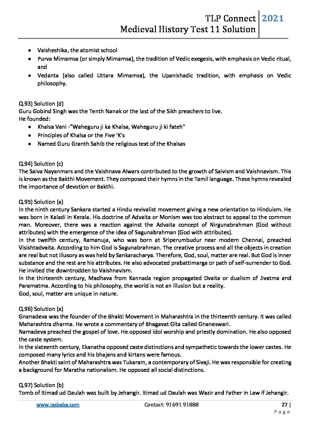 / IASBABA TLP CONNECT PRELIMS TEST-11- MEDIEVAL HISTORY-2022 (BLACK & WHITE)