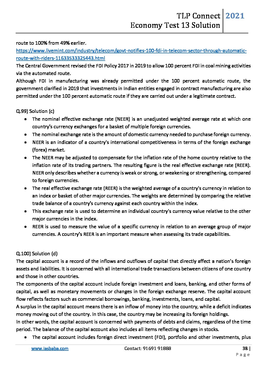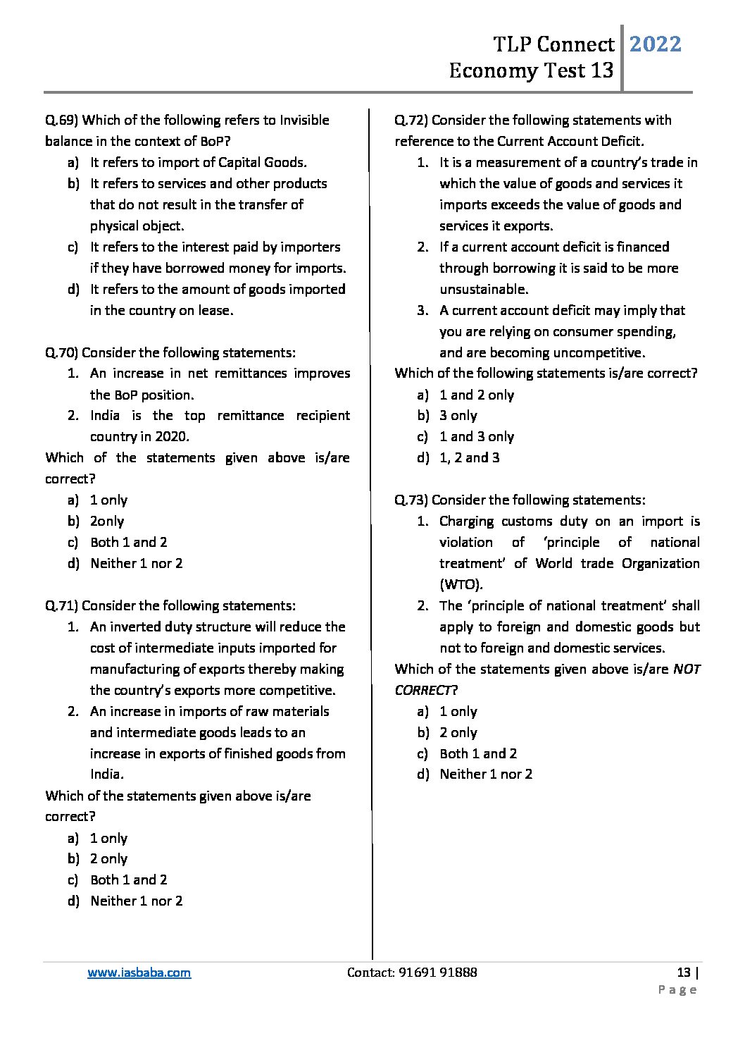 / IASBABA TLP CONNECT PRELIMS TEST-13 ECONOMY-2022 (BLACK & WHITE)
