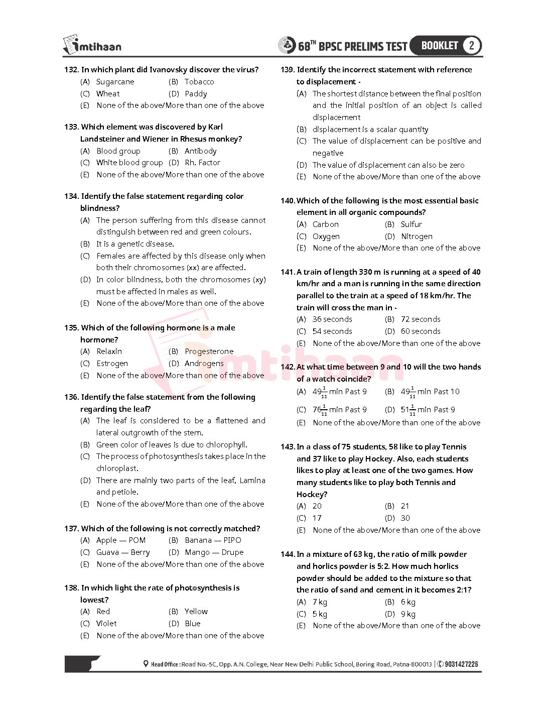 / IMTIHAAN IAS 2023 BPSC 68TH PRELIMS TEST-2 (BLACK & WHITE)