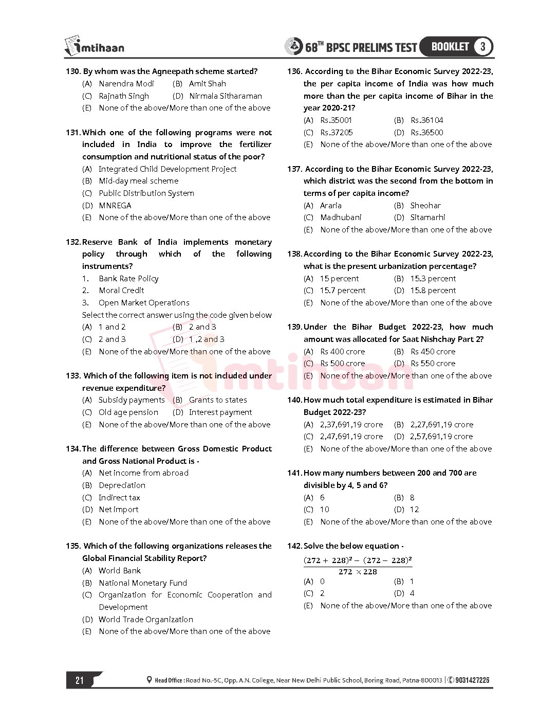 IMTIHAAN IAS 2023 BPSC 68TH PRELIMS TEST-3 (BLACK & WHITE) quantity