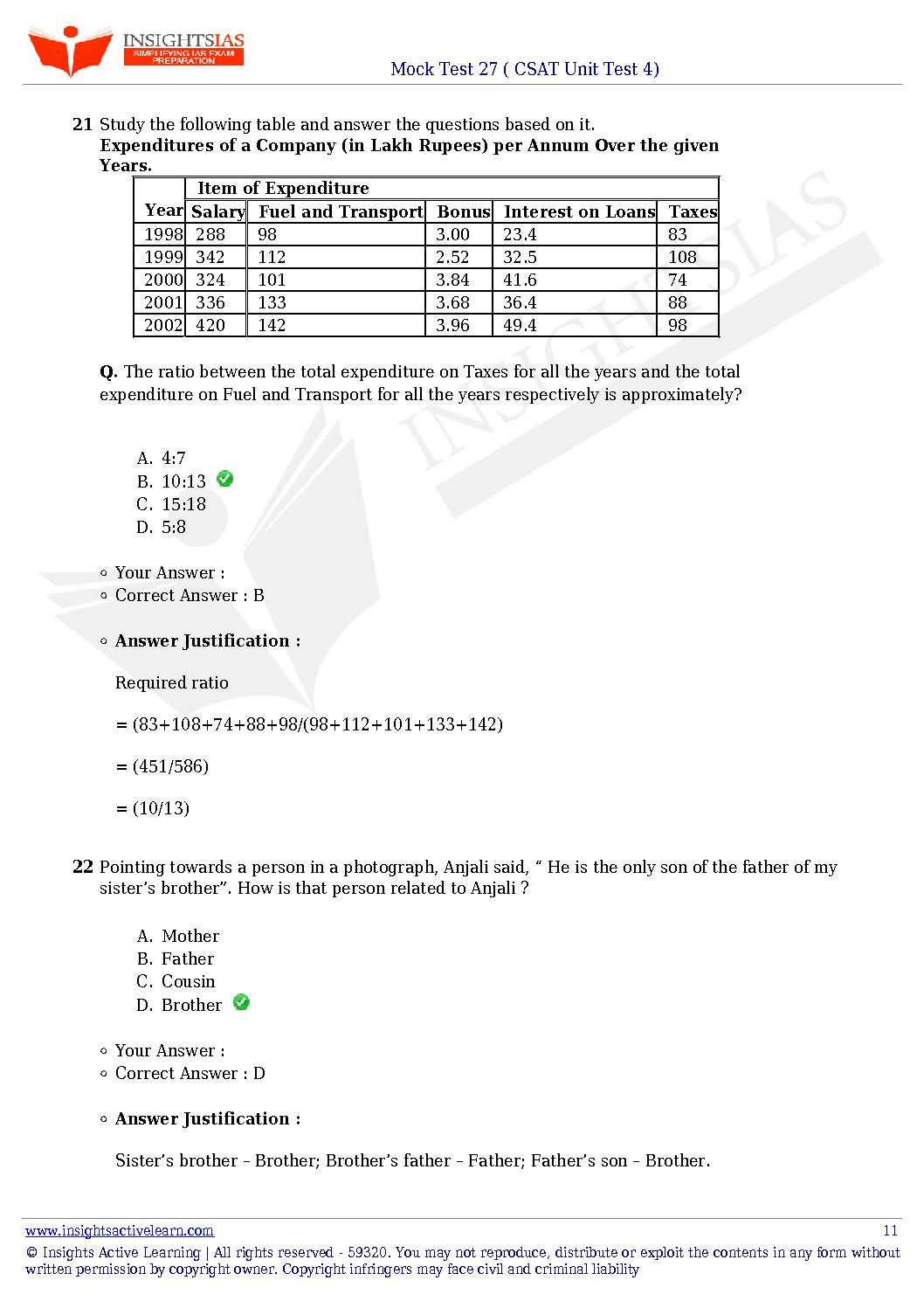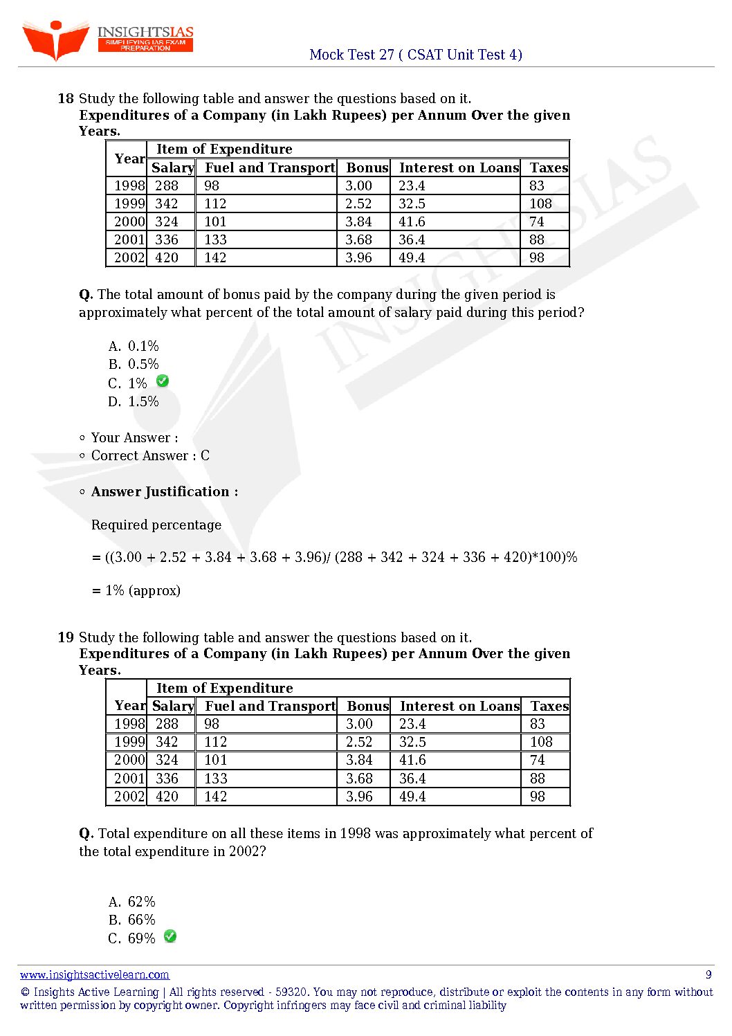 / INISGHTS ONINDIA PT TEST-27 ( CSAT UNIT TEST-4) 2019