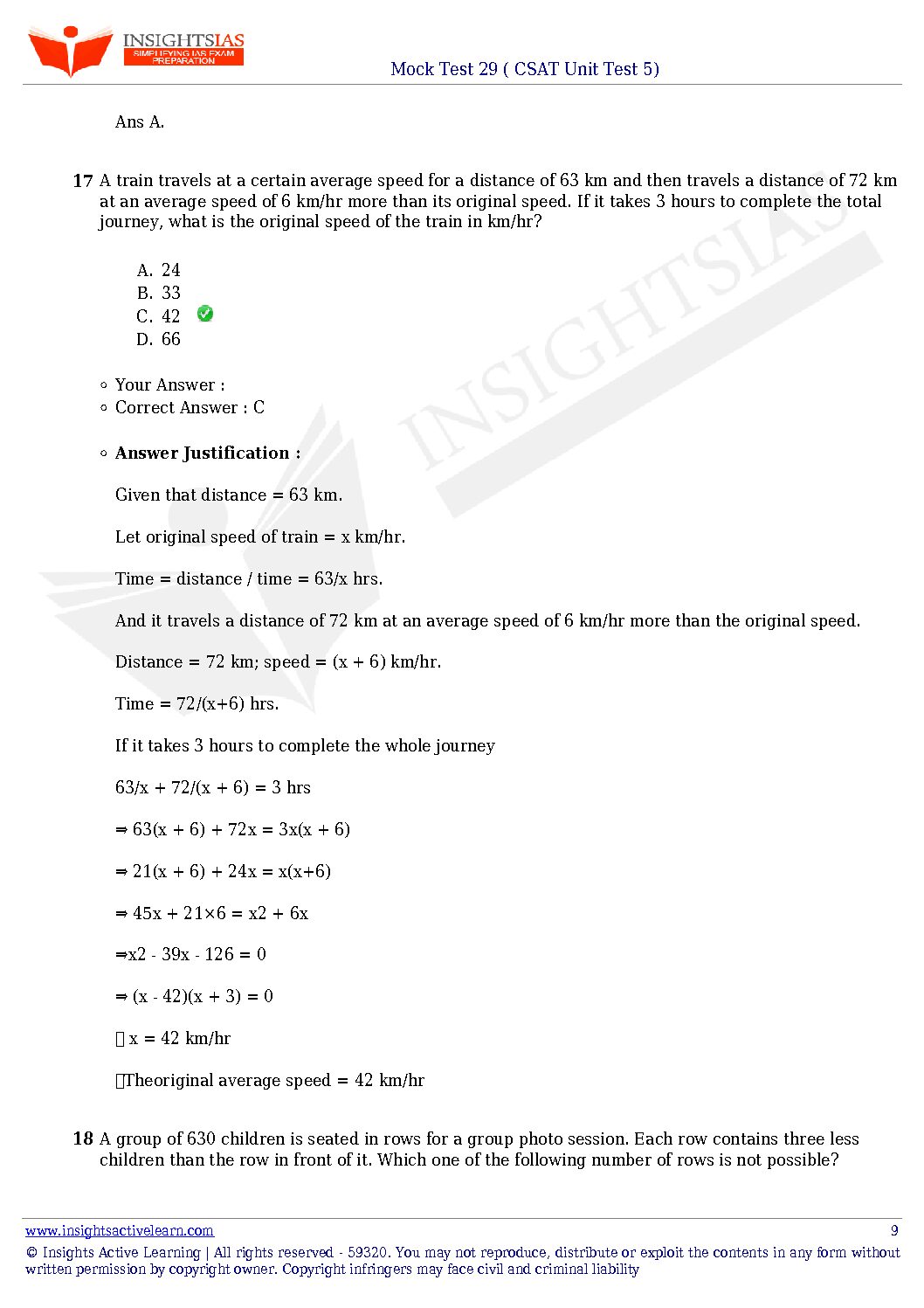 / INISGHTS ONINDIA PT TEST-29 ( CSAT UNIT TEST-5) 2019